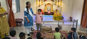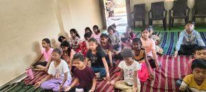 goodness of men. No nation is great or good because parliament enacts this or that, but because its men are great and good. Men are more valuable than all the wealth of the world. With these ideas and ideals of Swami Vivekananda and him as an inspiration every Sunday in campus of Ashram we hold a weekly programmes for children, girls and youths where we try to manifest latent energy of youth & put them in direction of Nation Building and Spiritual Awakening, through various different activities. In modern times, vitality of Value Education is rigorously felt; especially for children who are exposed to diverse aspects of life through different media’s and internet. To add up challenges of our times are enormous. To get our children ready for these vanities and instigate them with Values, every Sunday we conduct a programmes for children too.