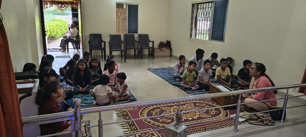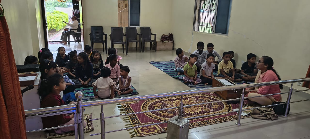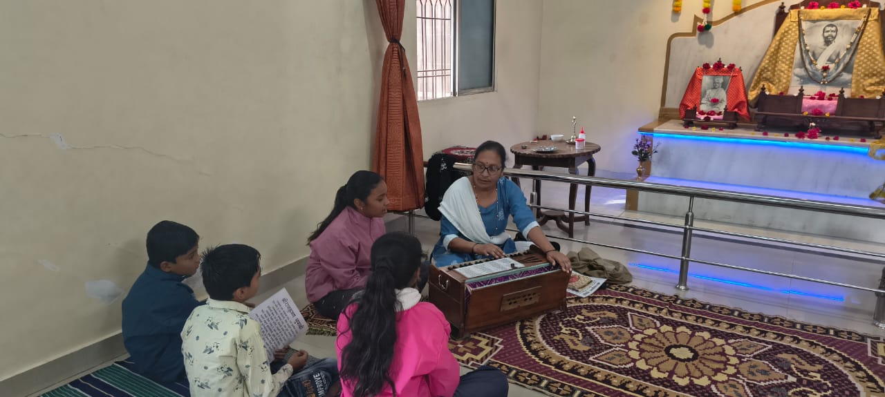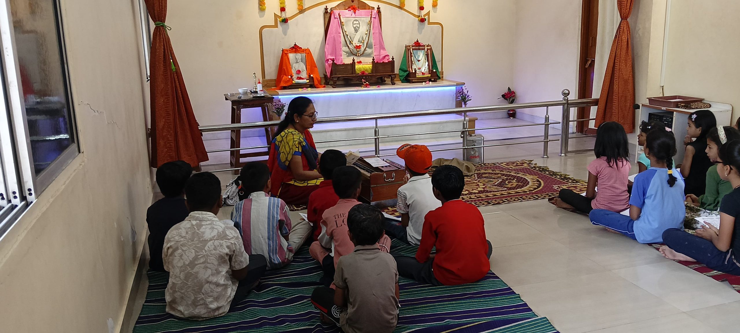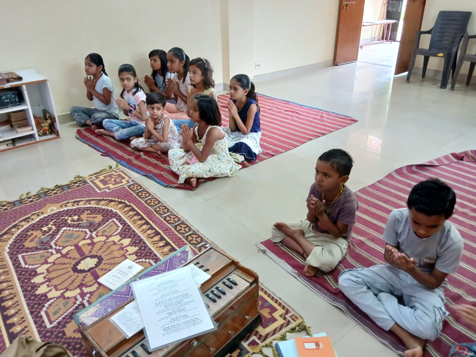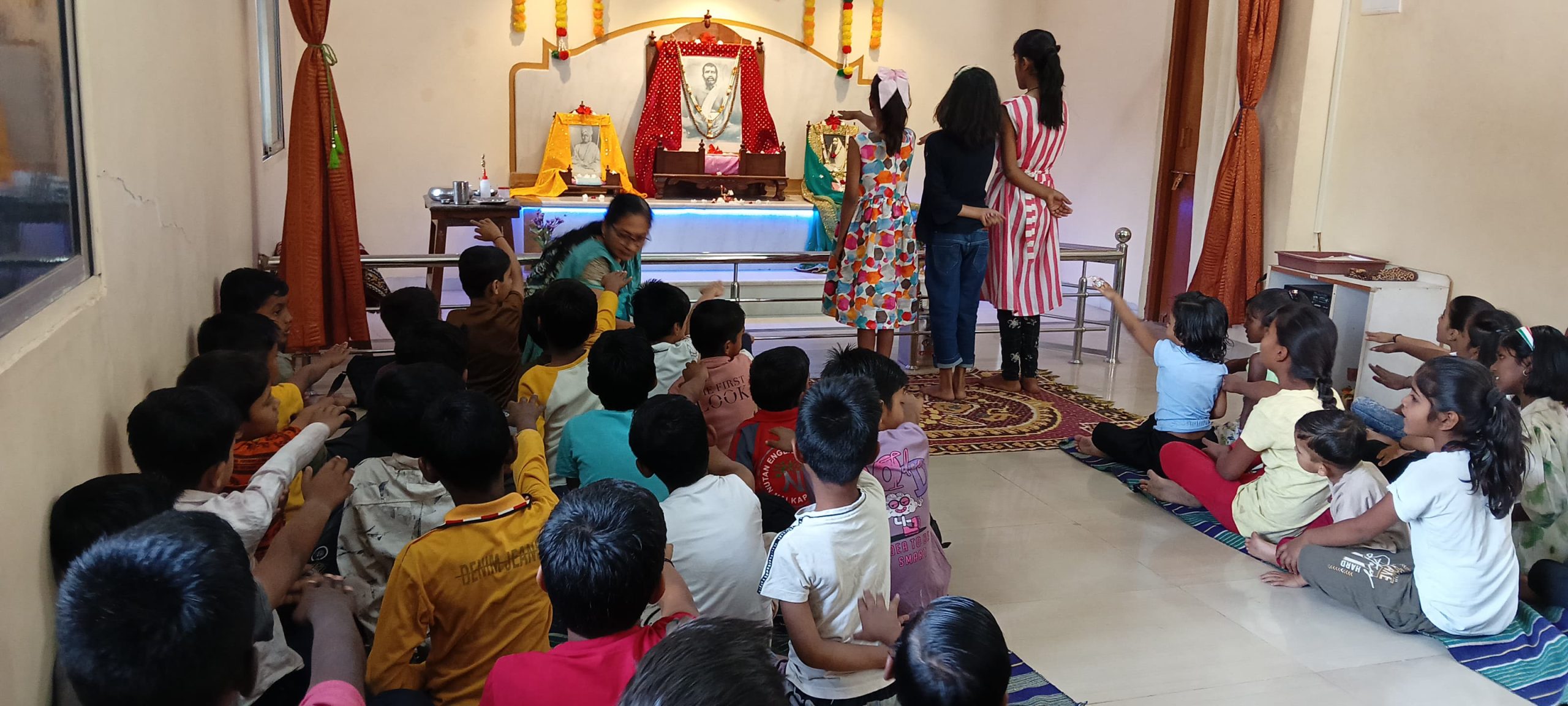 - Balak Sangha: For imparting moral and spiritual education to the school going children, the Balak Sangha of the Ashram holds classes for children on every Sunday morning. They are taught Chanting Hymns and Bhajans, Moral and Spiritual Story Telling, Yoga and Games etc. Children play dramas on the lives of Holy Trio on various occasions.