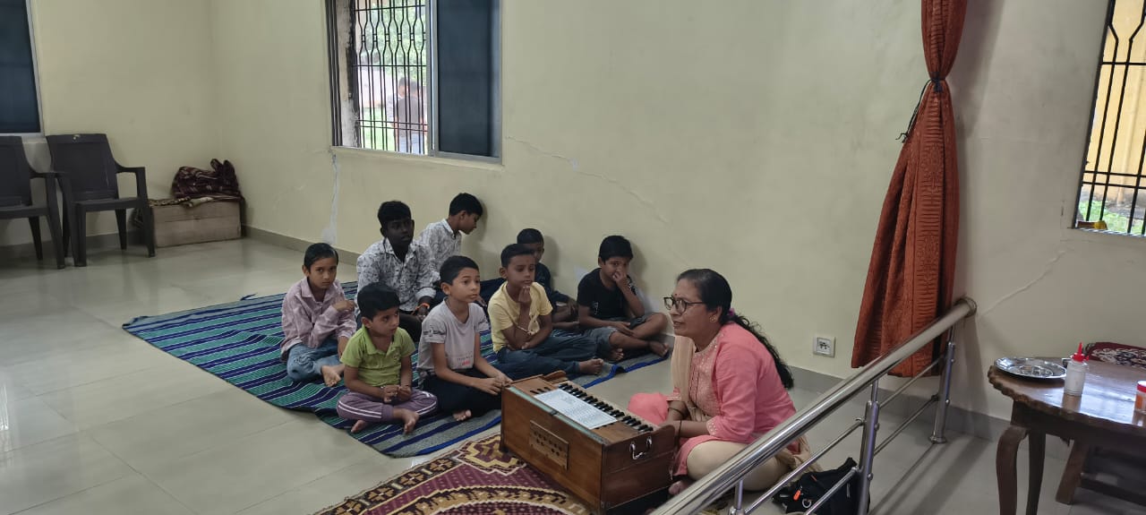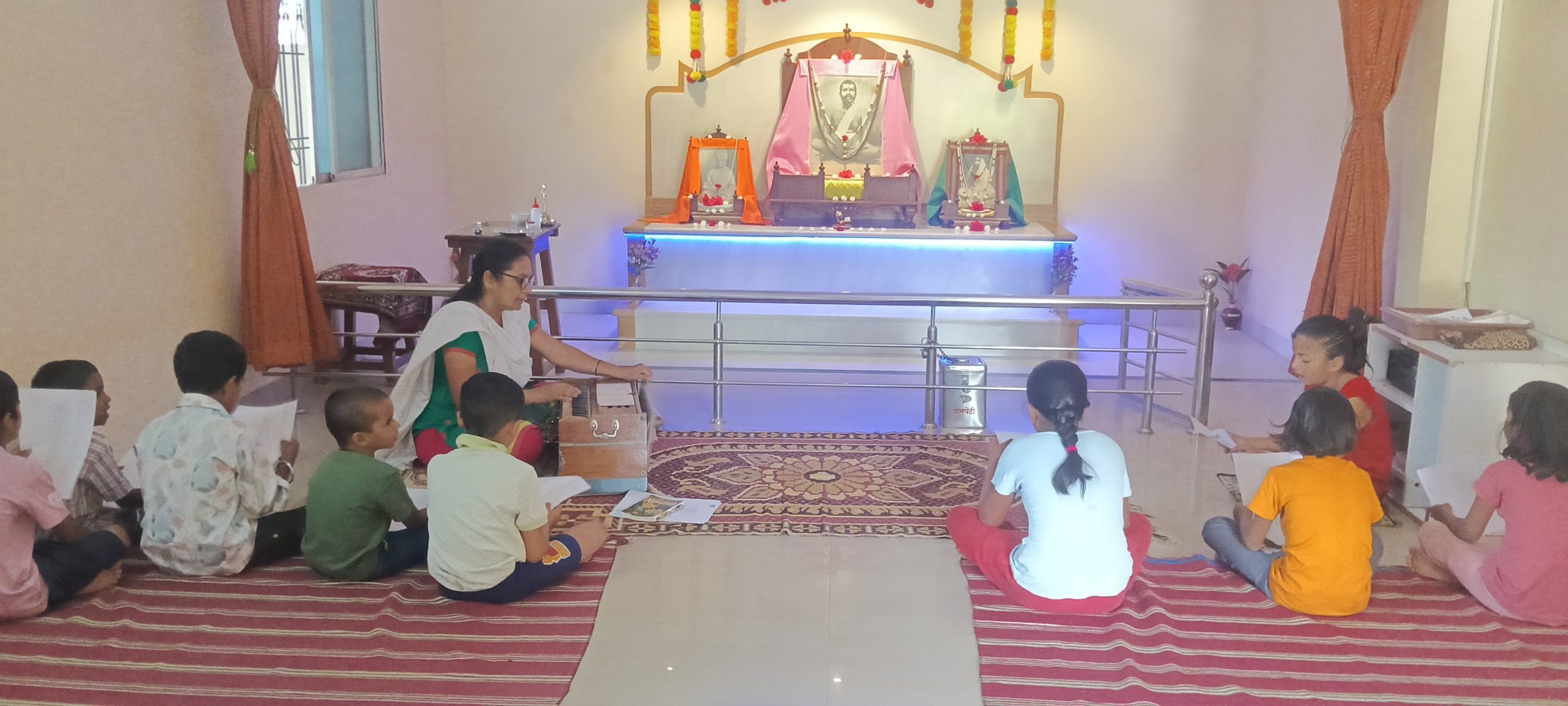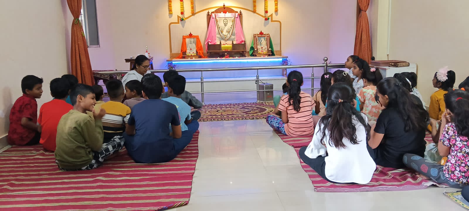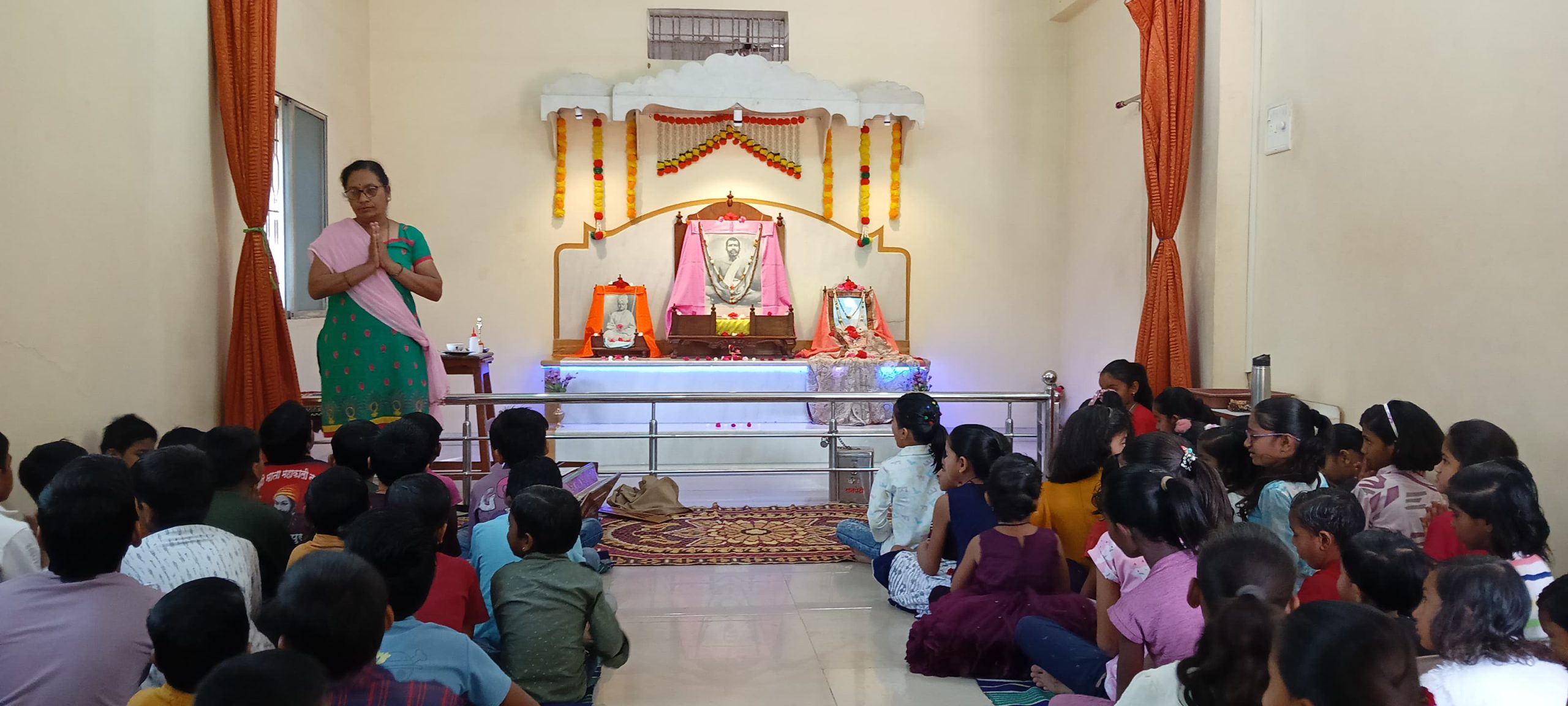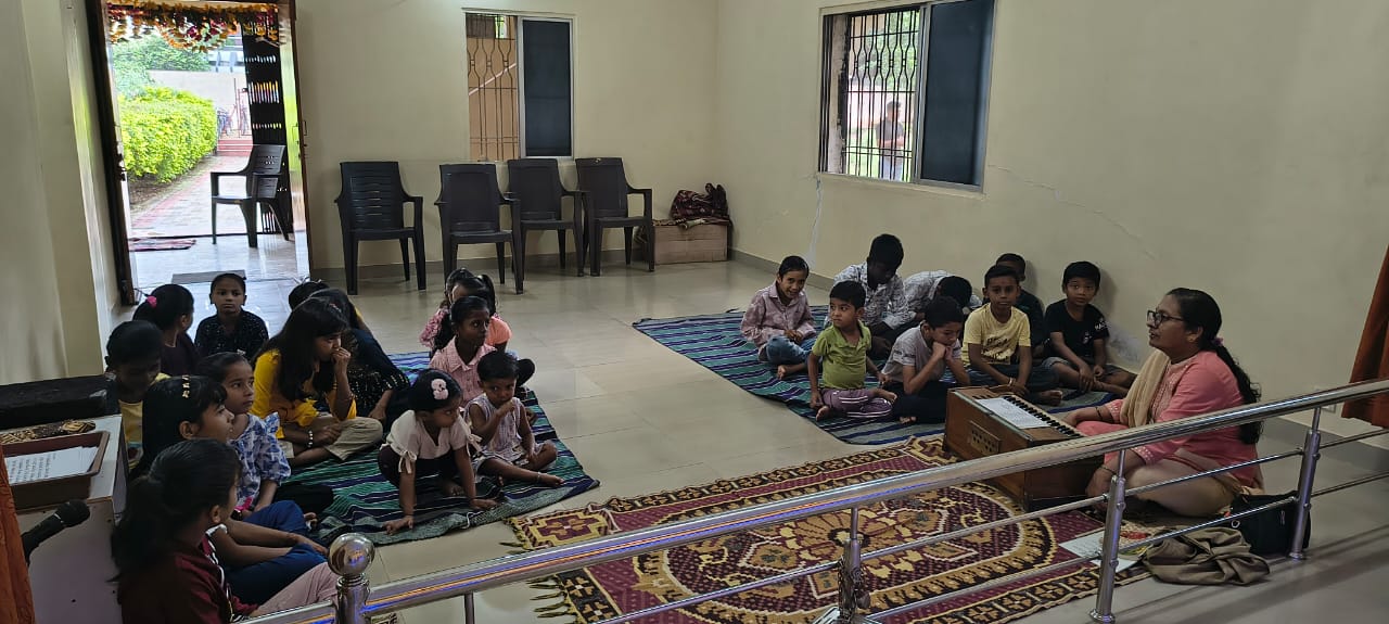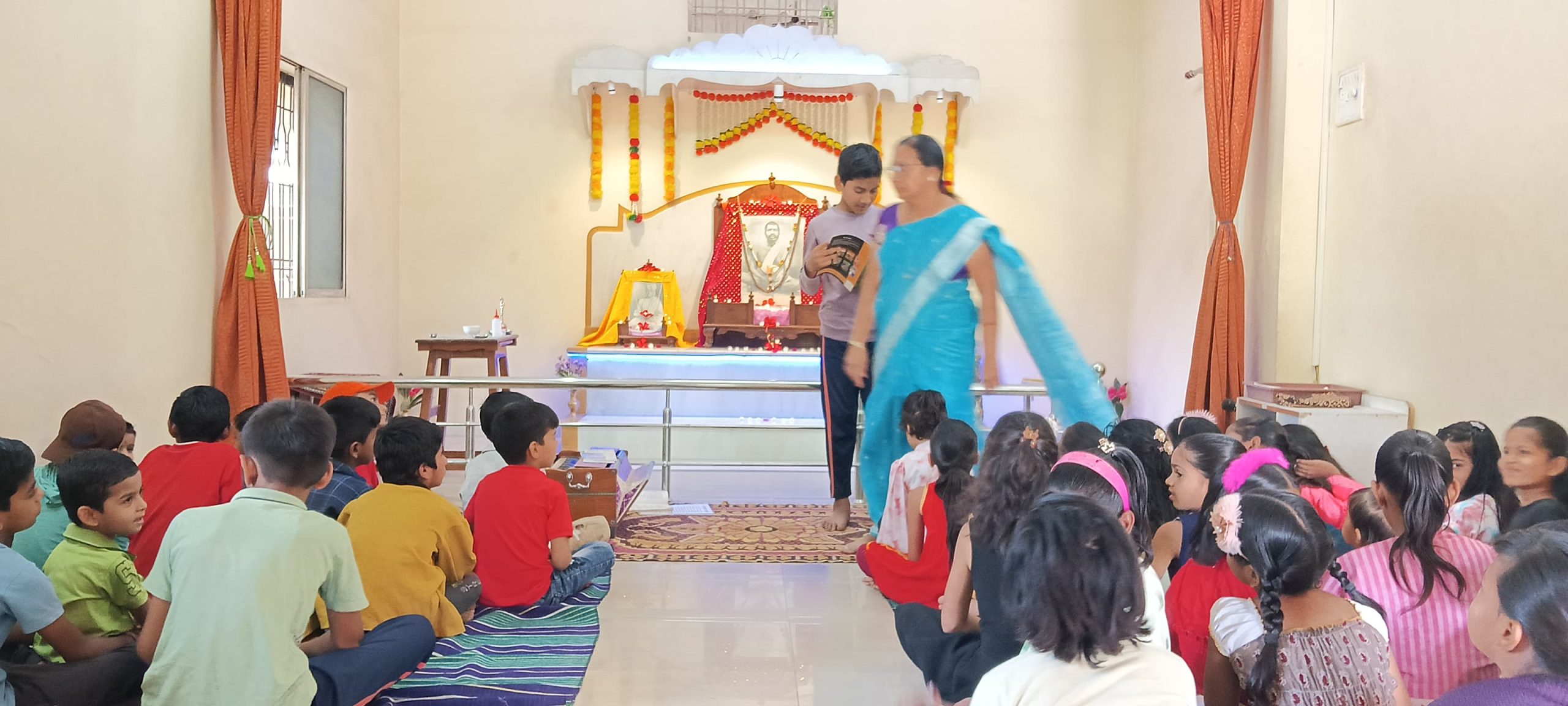 - Balak Sangha: For imparting moral and spiritual education to the school going children, the Balak Sangha of the Ashram holds classes for children on every Sunday morning. They are taught Chanting Hymns and Bhajans, Moral and Spiritual Story Telling, Yoga and Games etc. Children play dramas on the lives of Holy Trio on various occasions.