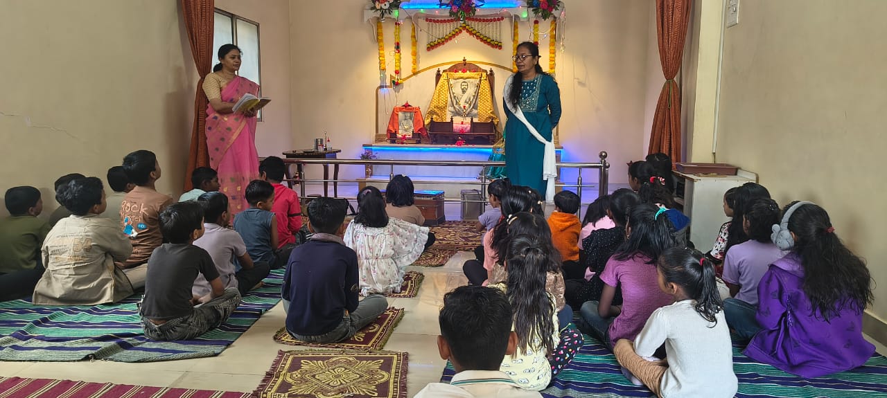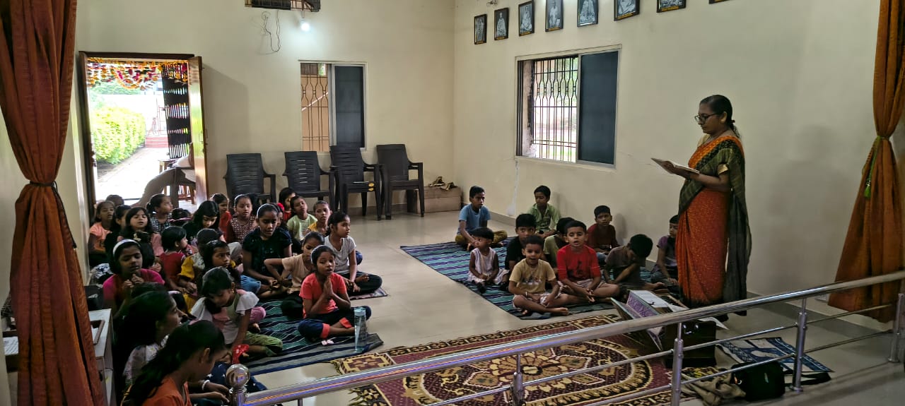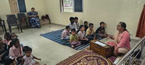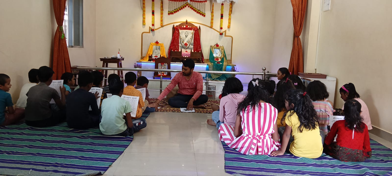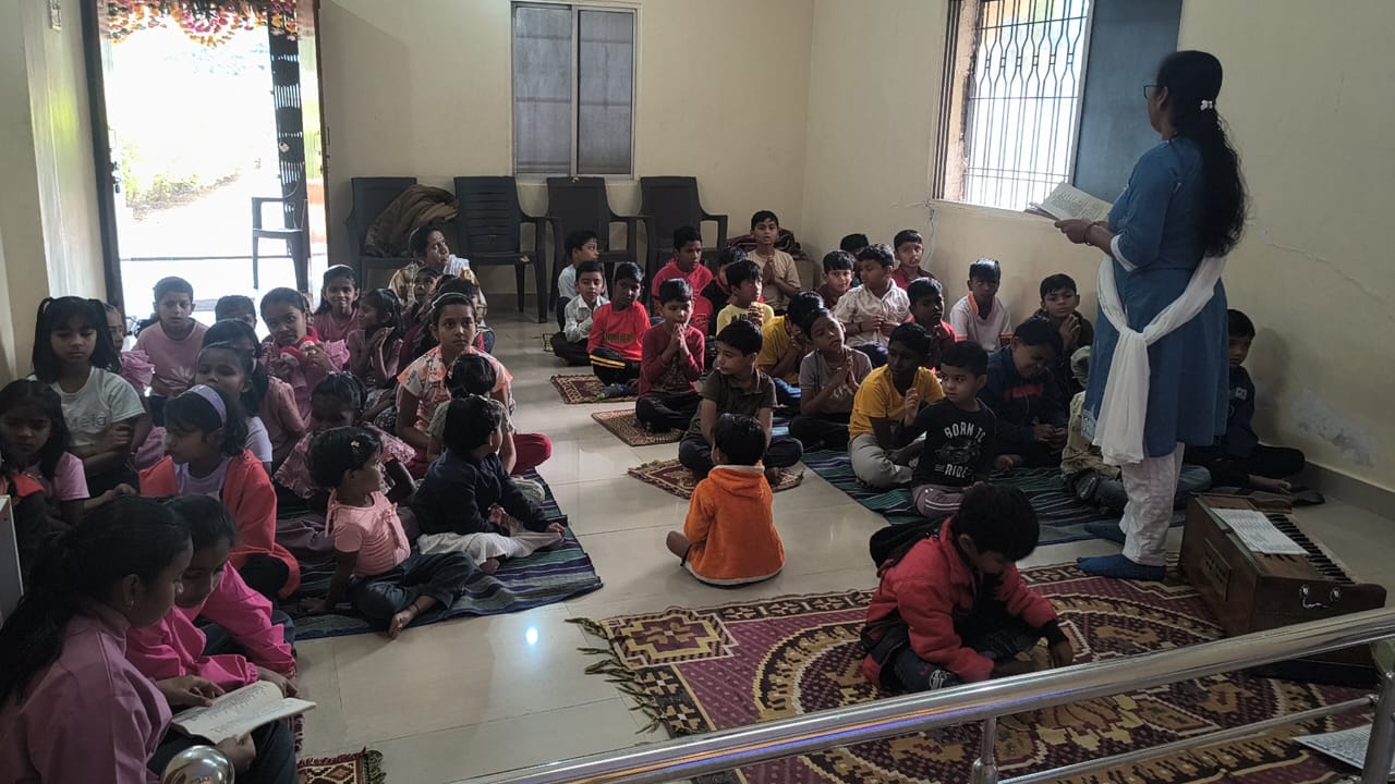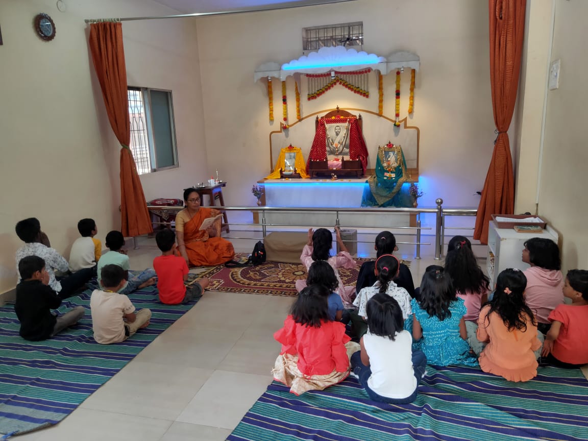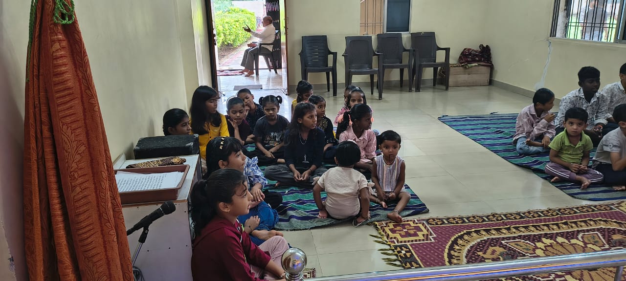 - Balak Sangha: For imparting moral and spiritual education to the school going children, the Balak Sangha of the Ashram holds classes for children on every Sunday morning. They are taught Chanting Hymns and Bhajans, Moral and Spiritual Story Telling, Yoga and Games etc. Children play dramas on the lives of Holy Trio on various occasions.