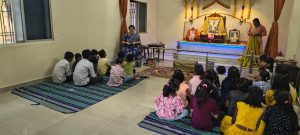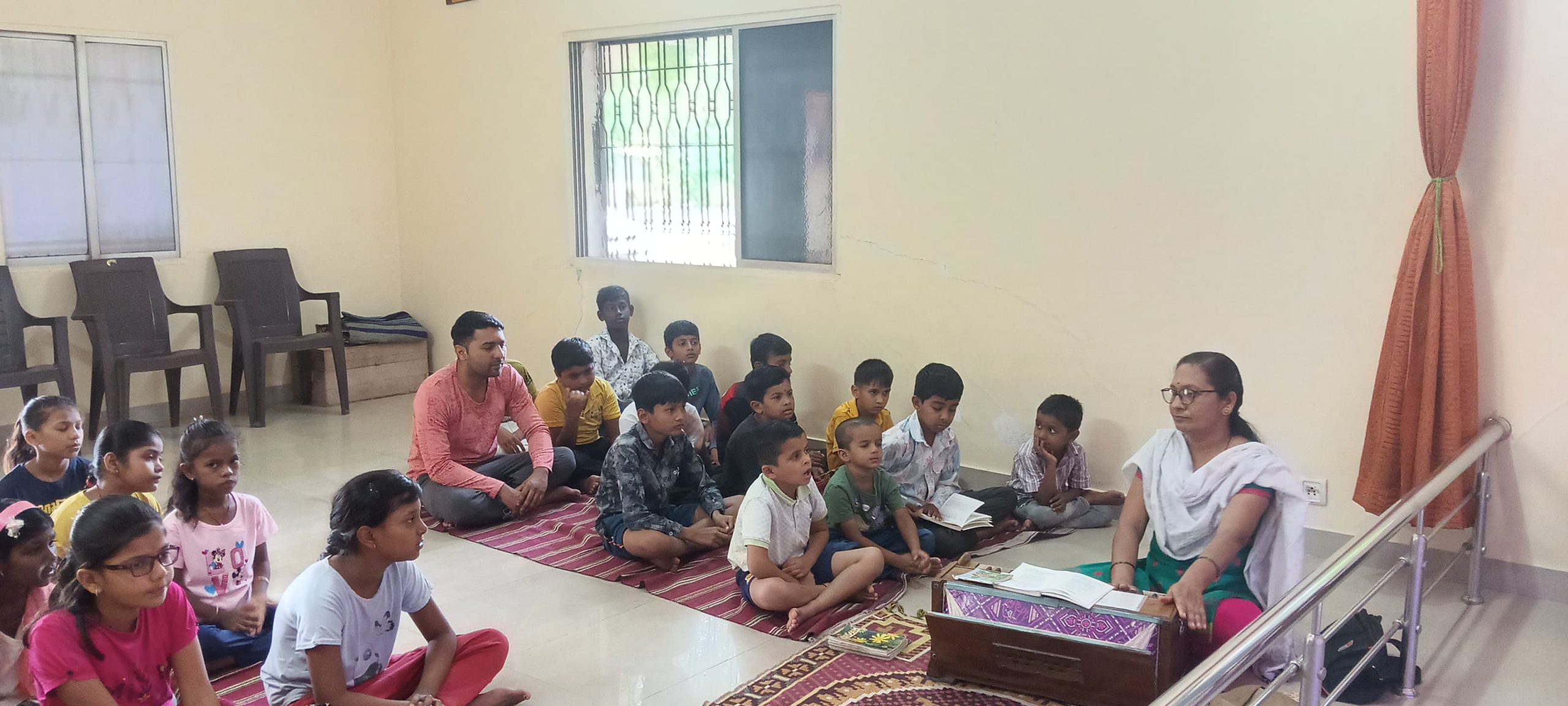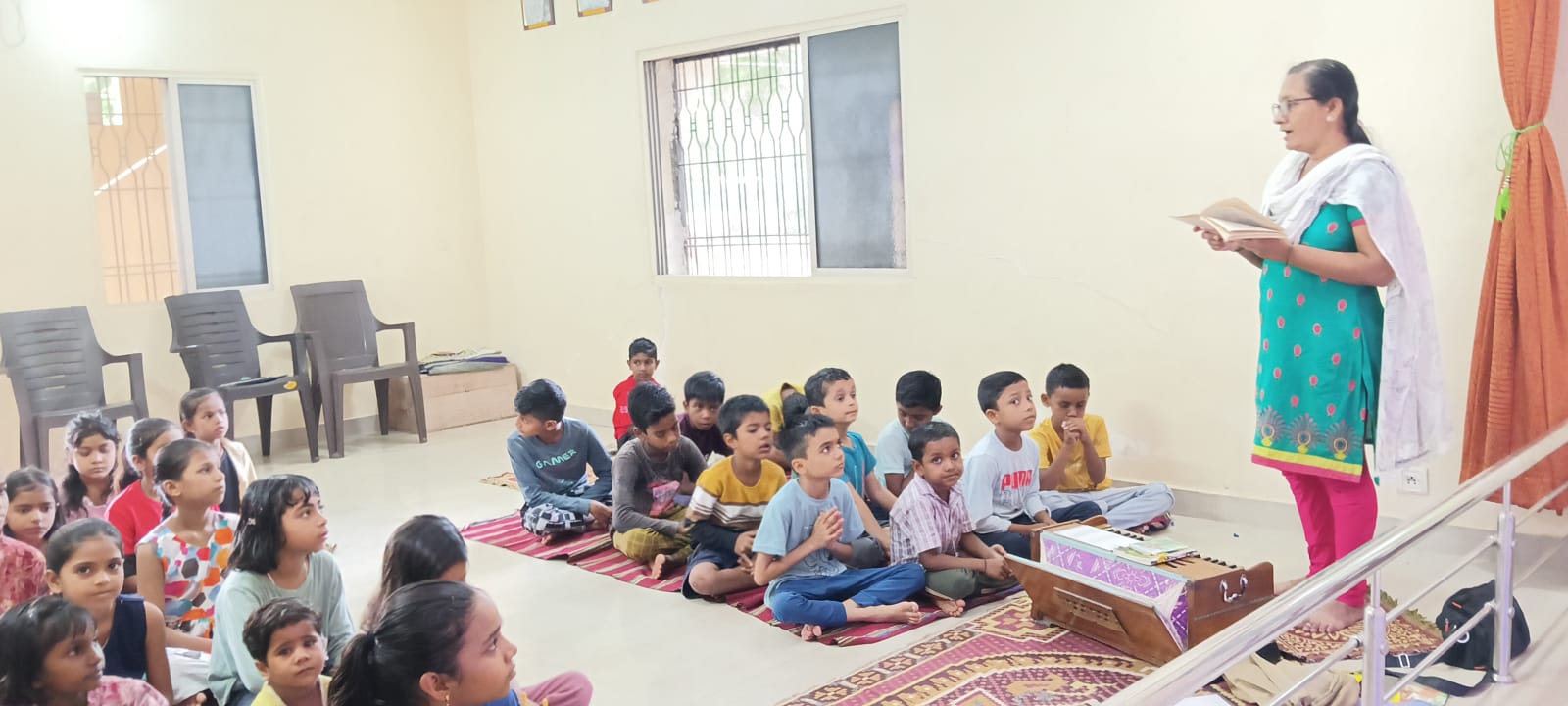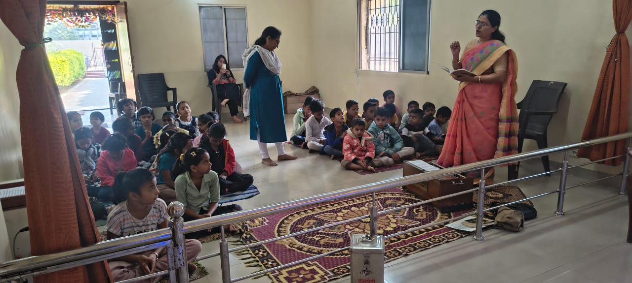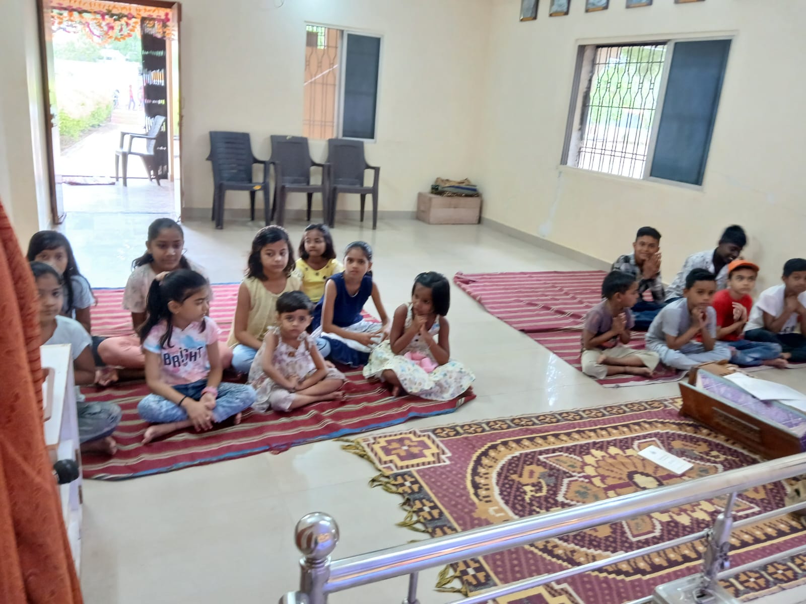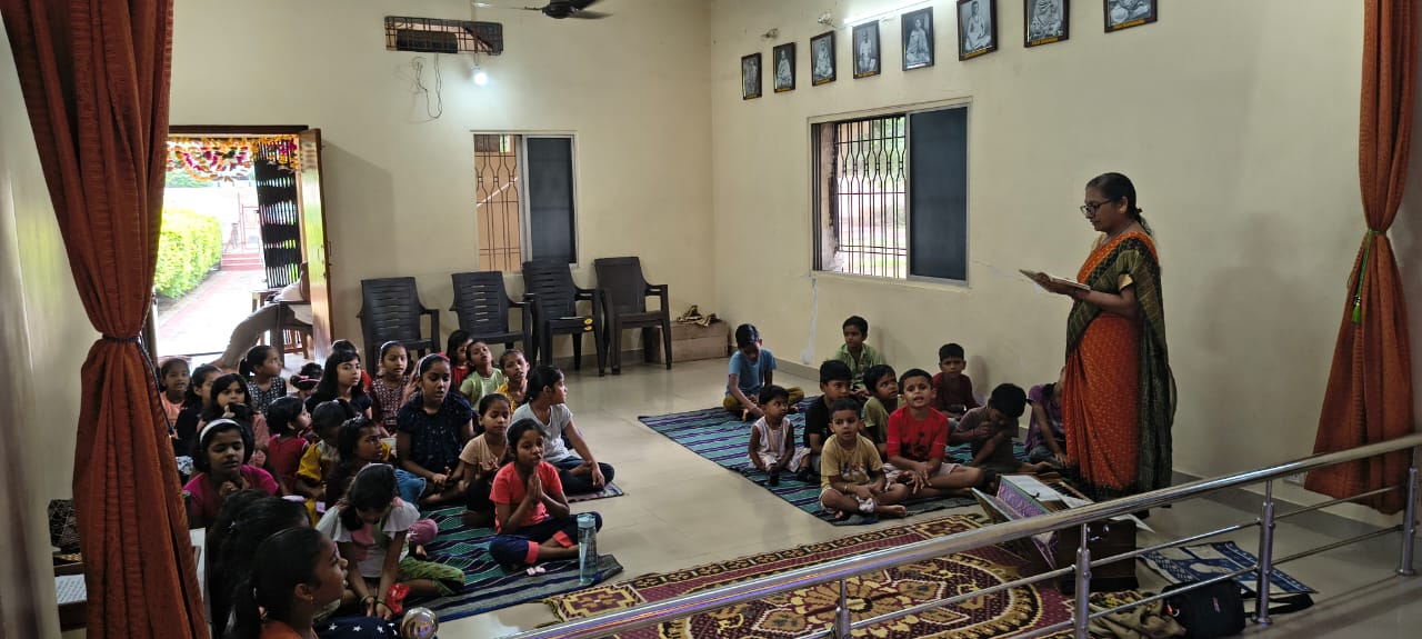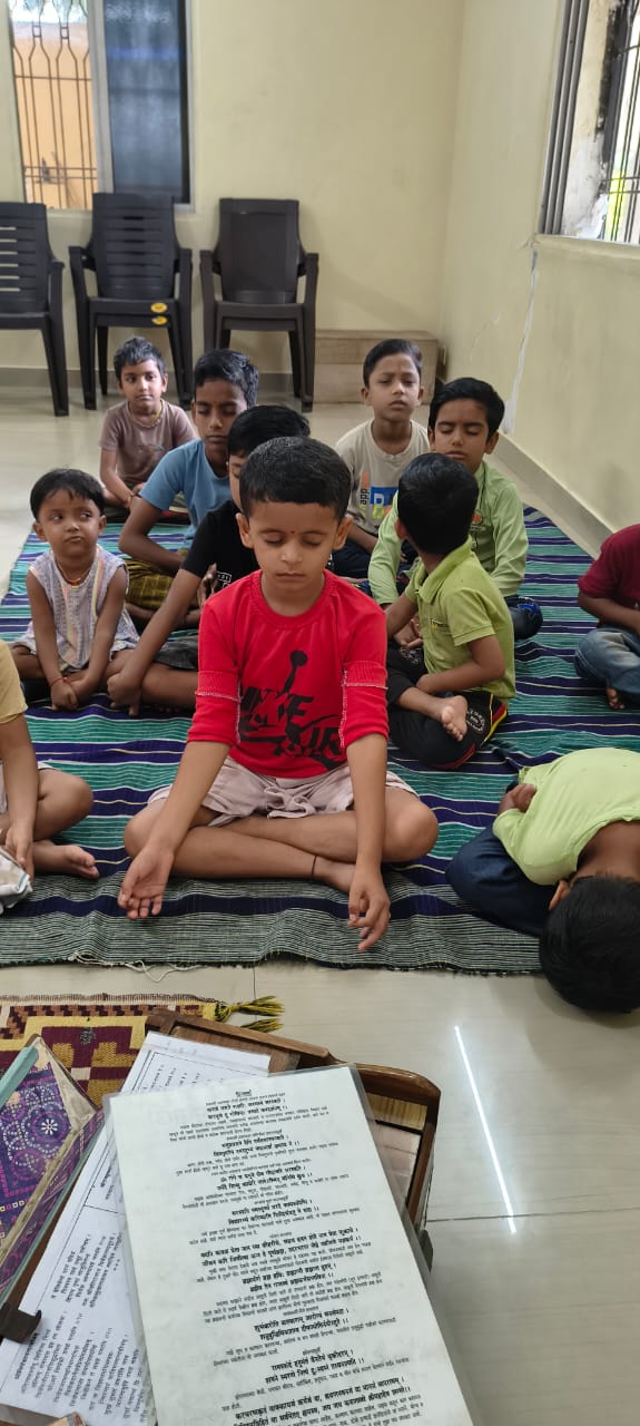 - Balak Sangha: For imparting moral and spiritual education to the school going children, the Balak Sangha of the Ashram holds classes for children on every Sunday morning. They are taught Chanting Hymns and Bhajans, Moral and Spiritual Story Telling, Yoga and Games etc. Children play dramas on the lives of Holy Trio on various occasions.