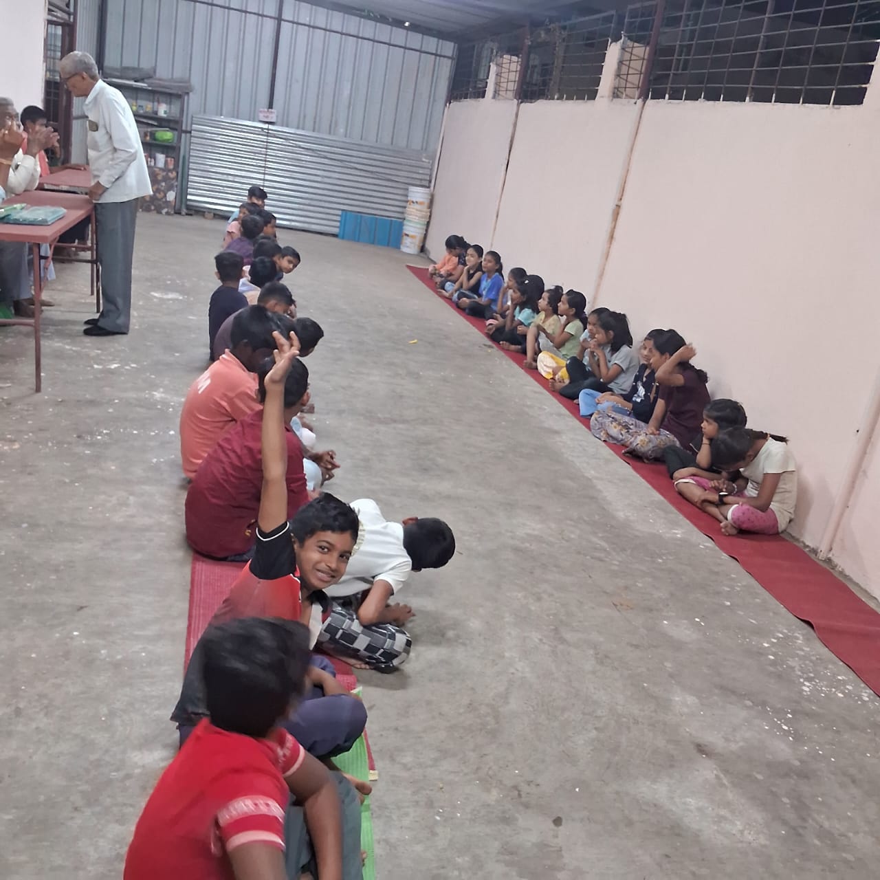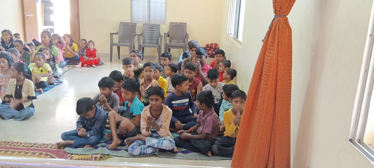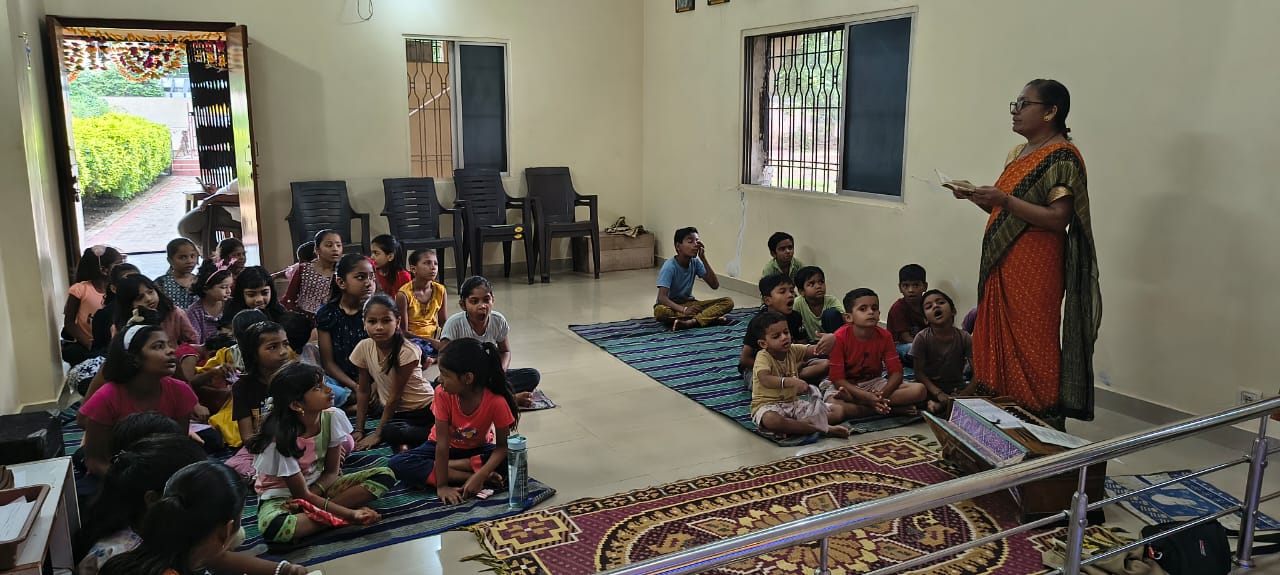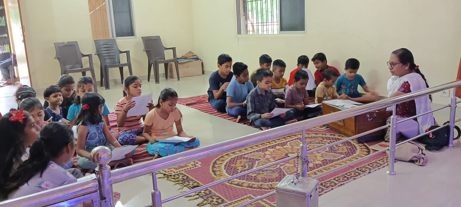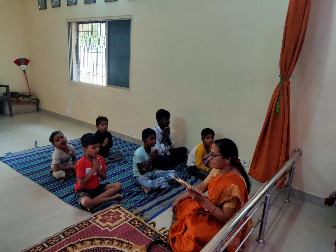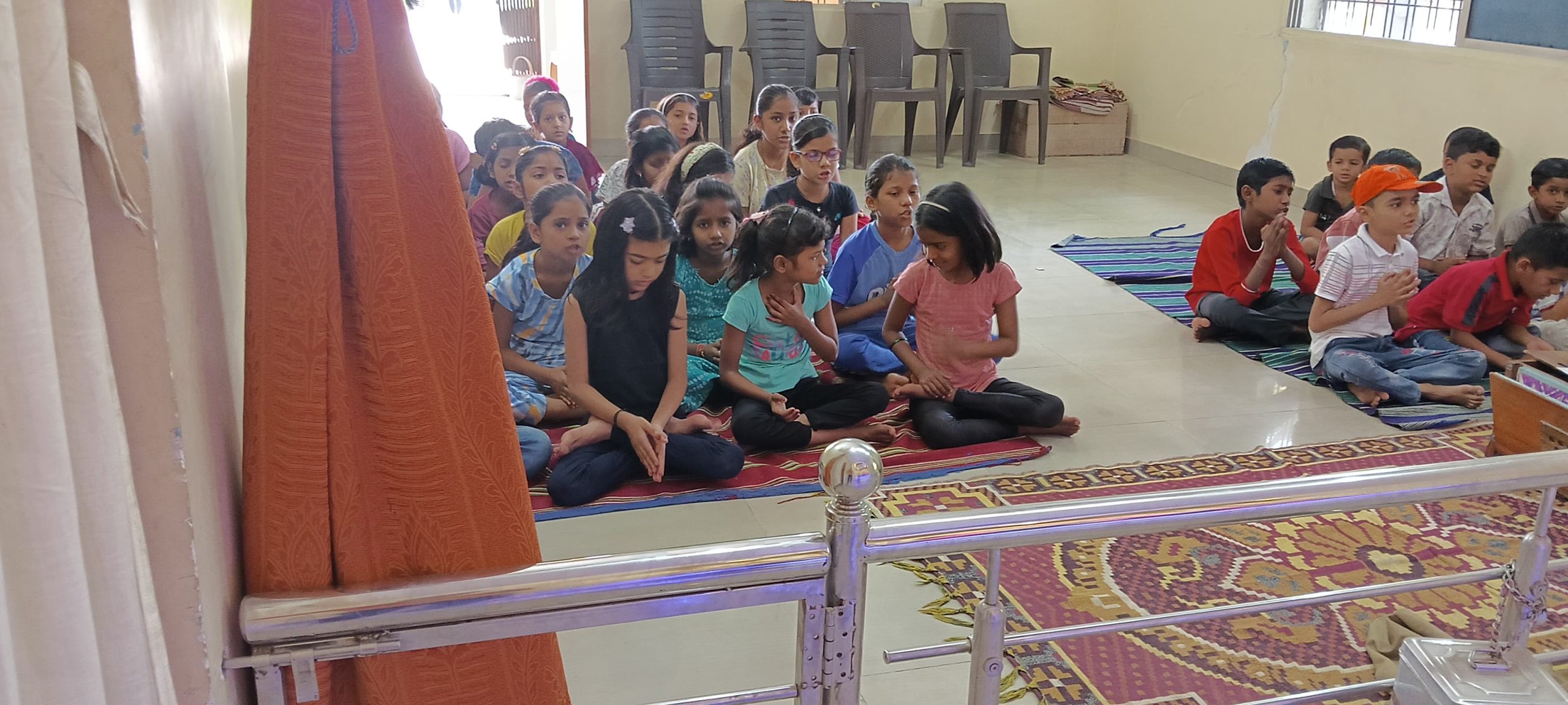 - Balak Sangha: For imparting moral and spiritual education to the school going children, the Balak Sangha of the Ashram holds classes for children on every Sunday morning. They are taught Chanting Hymns and Bhajans, Moral and Spiritual Story Telling, Yoga and Games etc. Children play dramas on the lives of Holy Trio on various occasions.