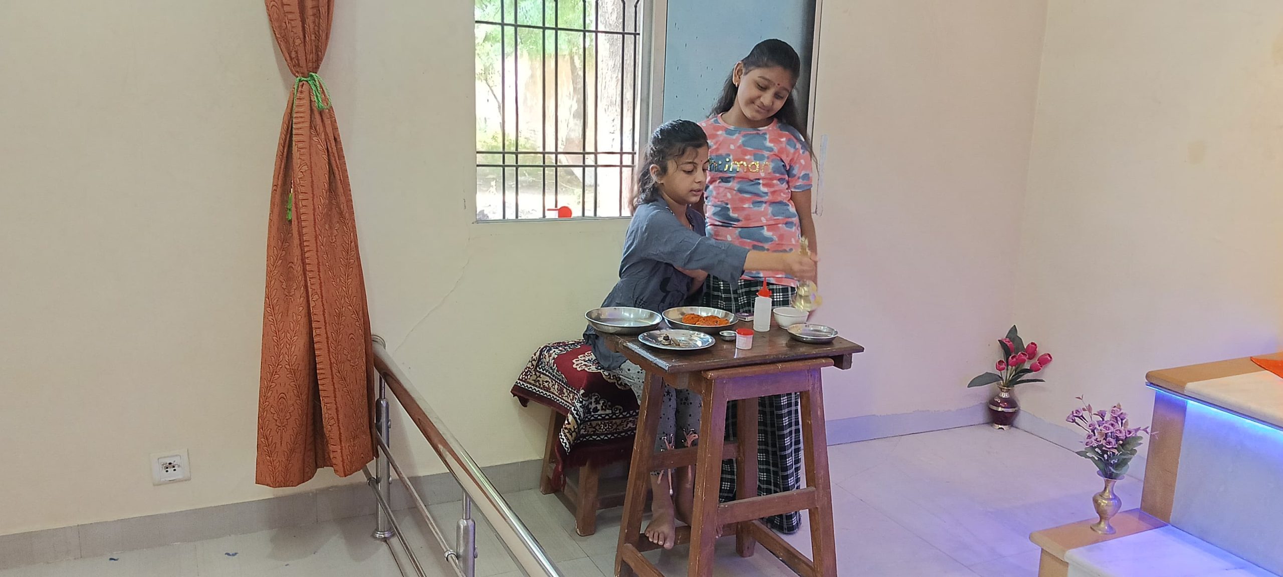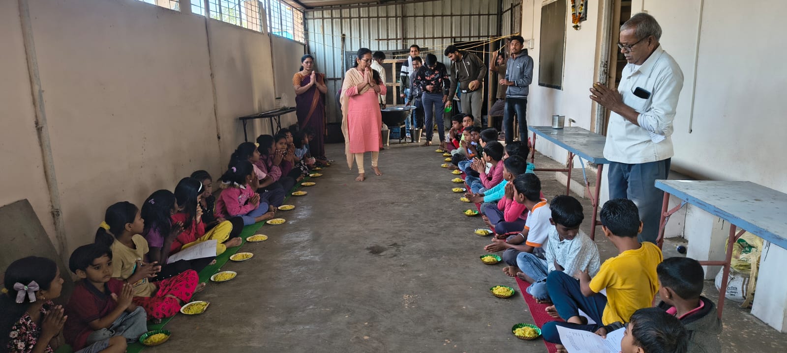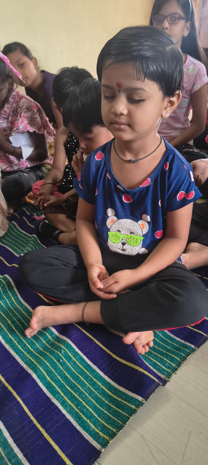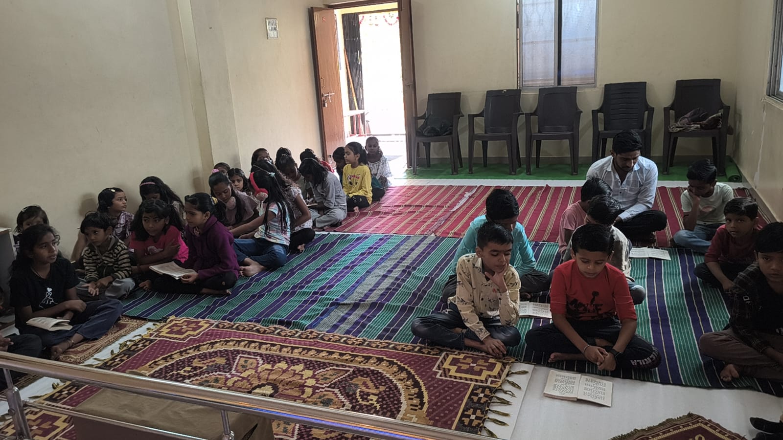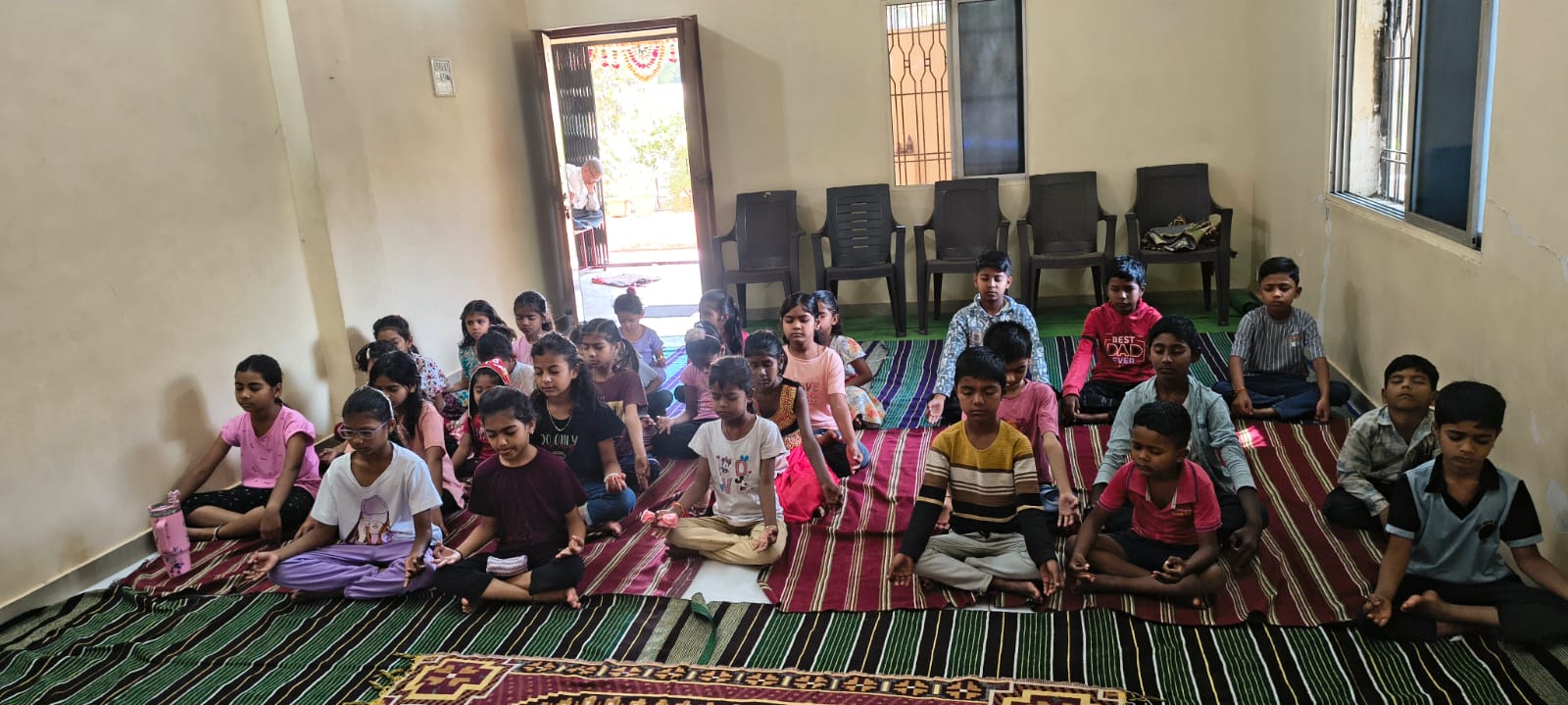 - Balak Sangha: For imparting moral and spiritual education to the school going children, the Balak Sangha of the Ashram holds classes for children on every Sunday morning. They are taught Chanting Hymns and Bhajans, Moral and Spiritual Story Telling, Yoga and Games etc. Children play dramas on the lives of Holy Trio on various occasions.