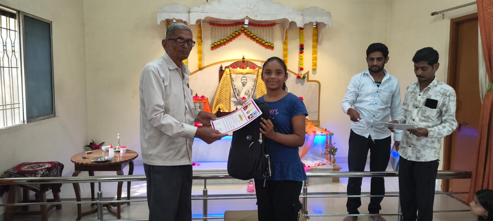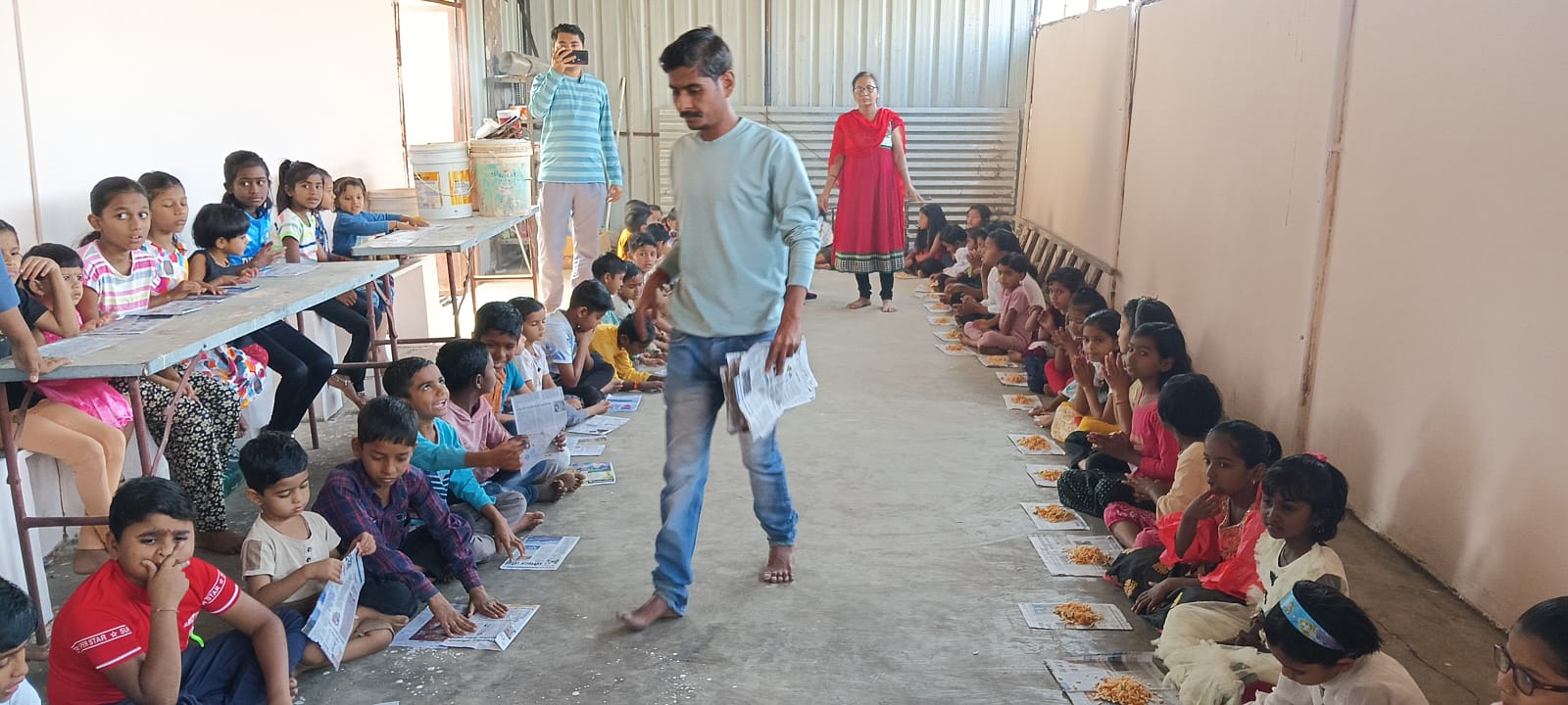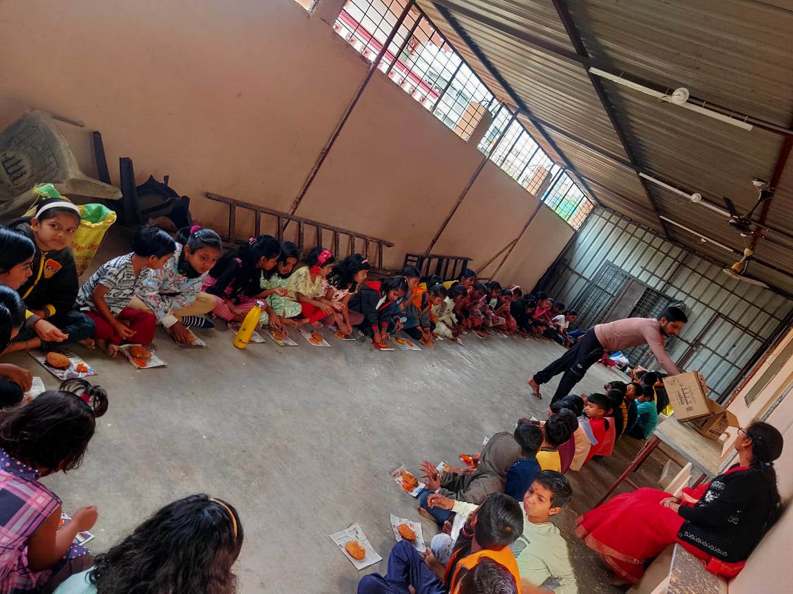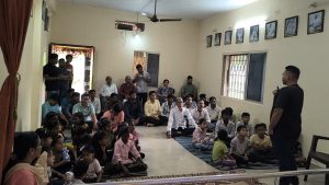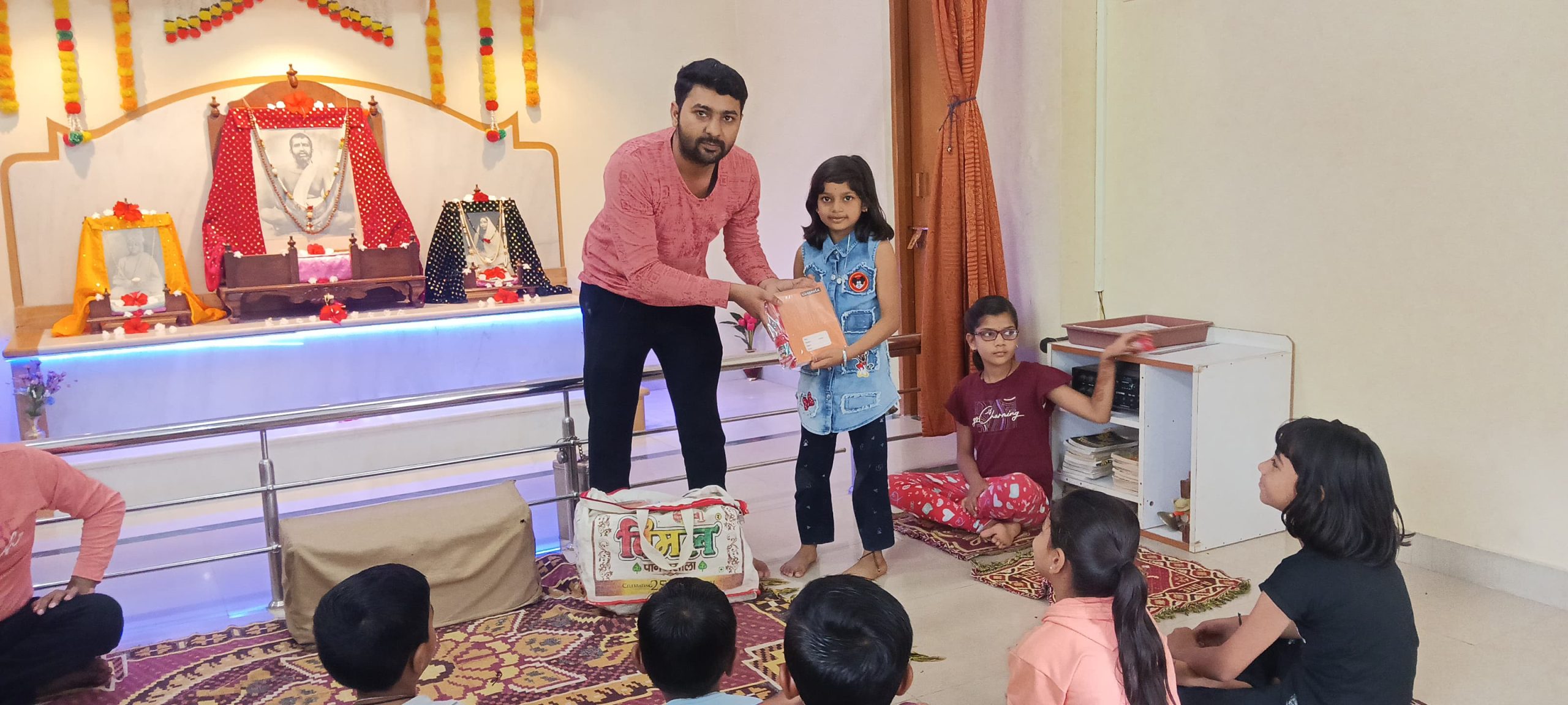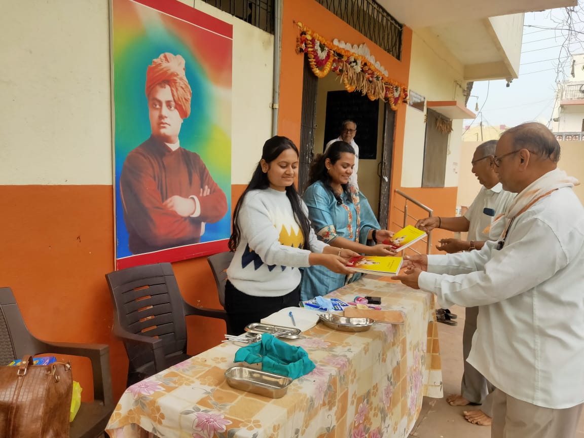 - Educational Material Distribution: The poor and needy students are given a set of study material like Note books, Pen, Pencil, Eraser, Pencil Sharpener, Hanuman Chalisa and the photo and sayings of Swami Vivekananda.