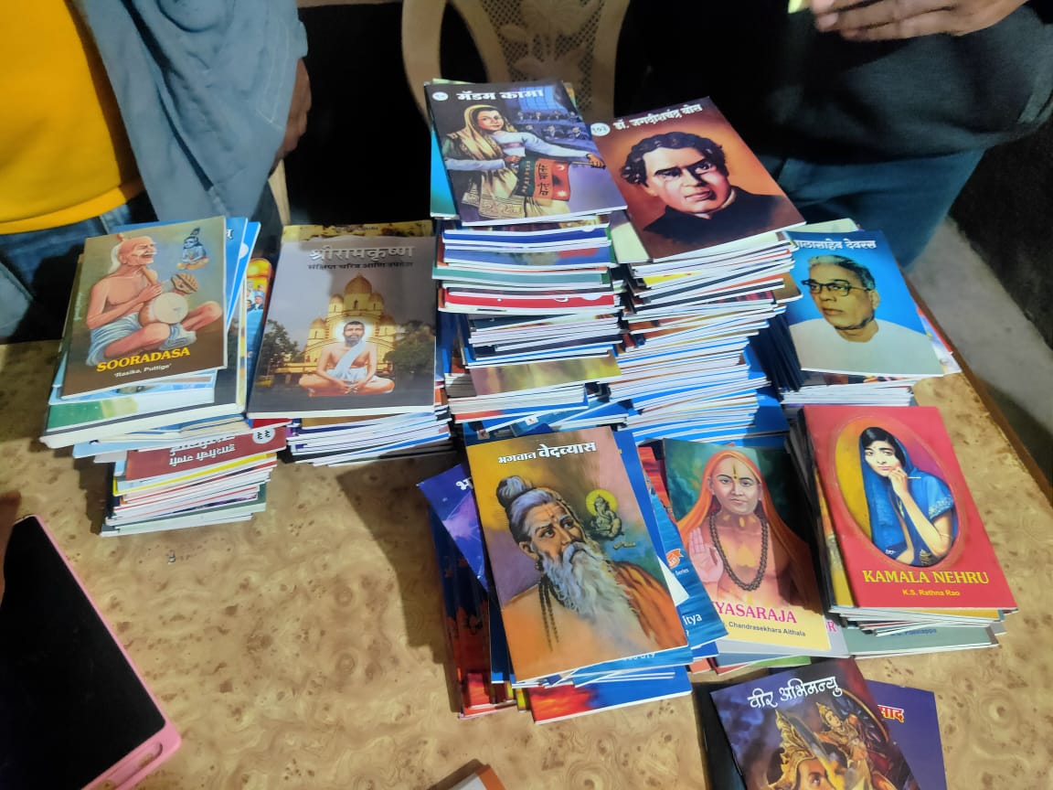 sell books on Ramakrishna-Vivekananda-Vedanta Literature, Scriptures such as Upanishads, Gita, etc. and other books on spiritual life, religion, yoga, meditation, value education, personality development, etc. We also sell books, booklets, etc. especially meant for children. Book-Sales counters are opened at various places occasionally. - Exhibition: To spread the message of Holy Trio, the pictorial exhibitions are arranged in nearby schools and colleges along with book sales.