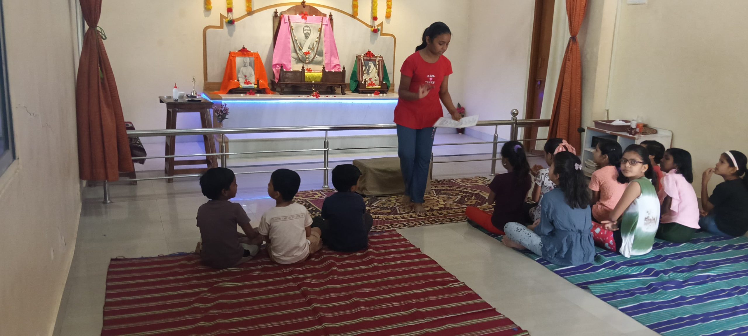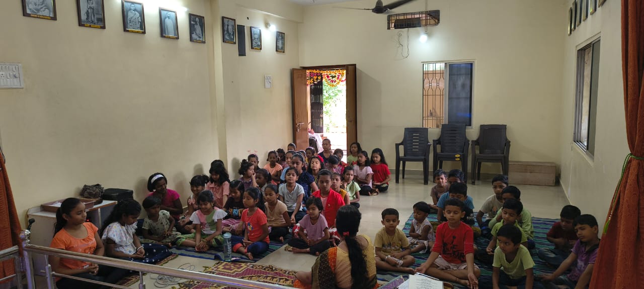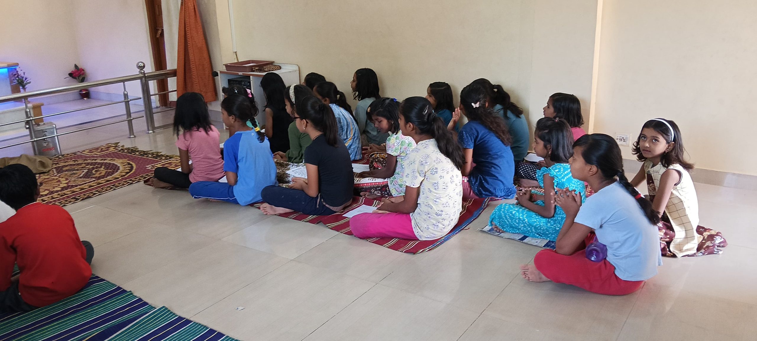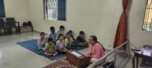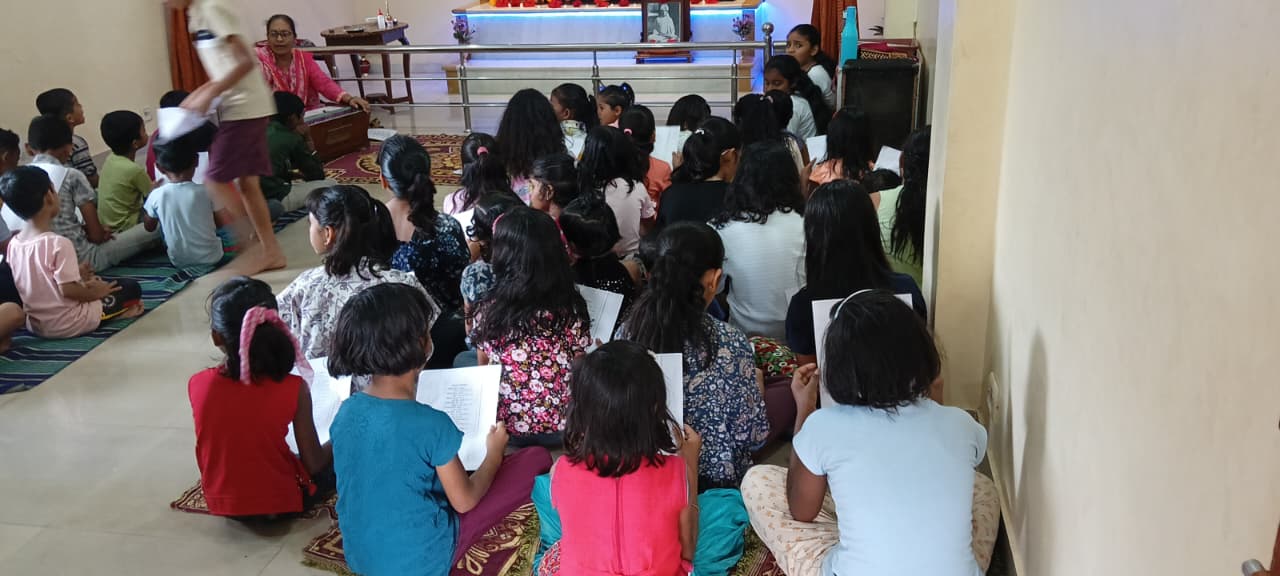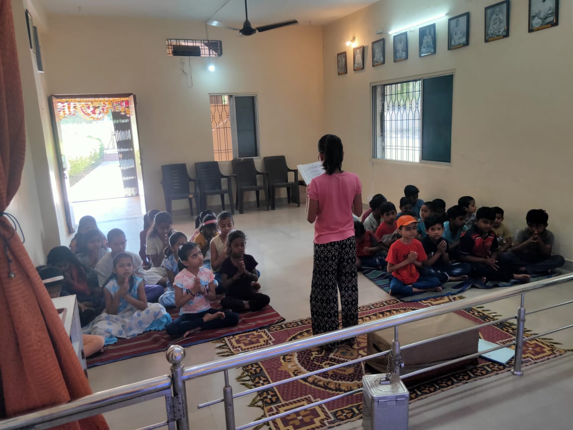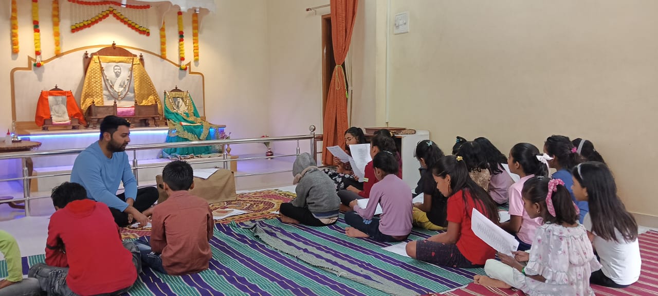 goodness of men. No nation is great or good because parliament enacts this or that, but because its men are great and good. Men are more valuable than all the wealth of the world. With these ideas and ideals of Swami Vivekananda and him as an inspiration every Sunday in campus of Ashram we hold a weekly programmes for children, girls and youths where we try to manifest latent energy of youth & put them in direction of Nation Building and Spiritual Awakening, through various different activities. In modern times, vitality of Value Education is rigorously felt; especially for children who are exposed to diverse aspects of life through different media’s and internet. To add up challenges of our times are enormous. To get our children ready for these vanities and instigate them with Values, every Sunday we conduct a programmes for children too.