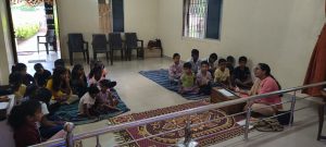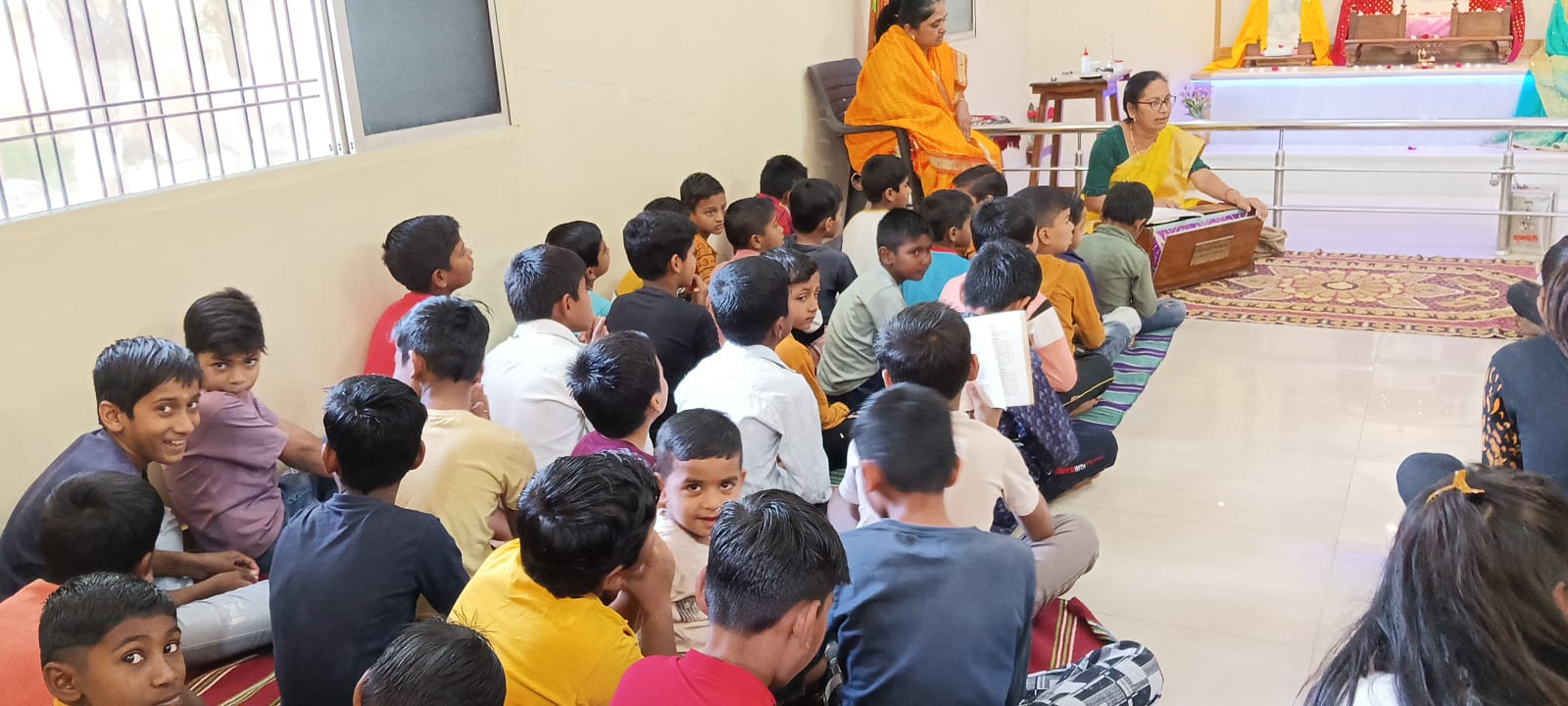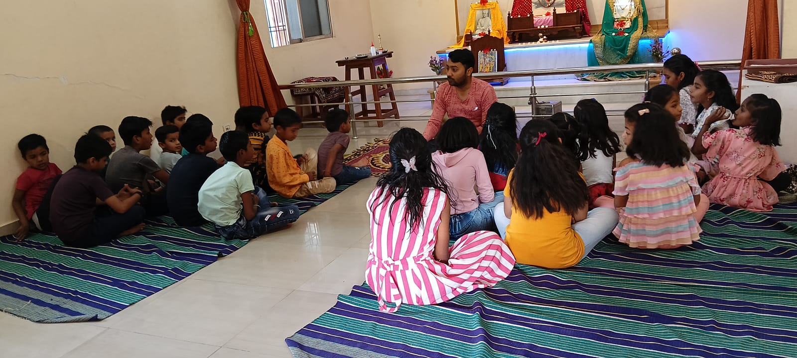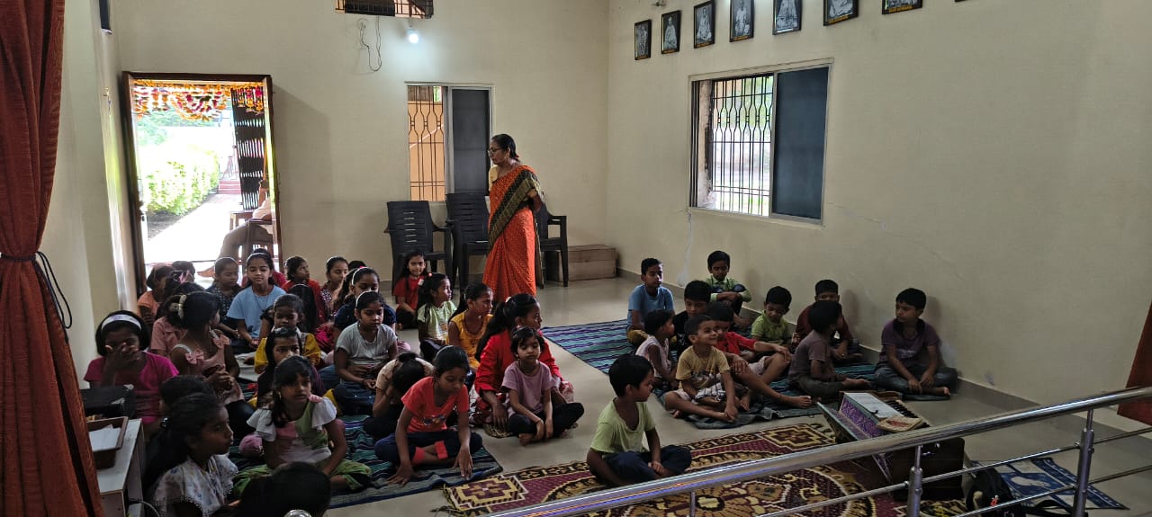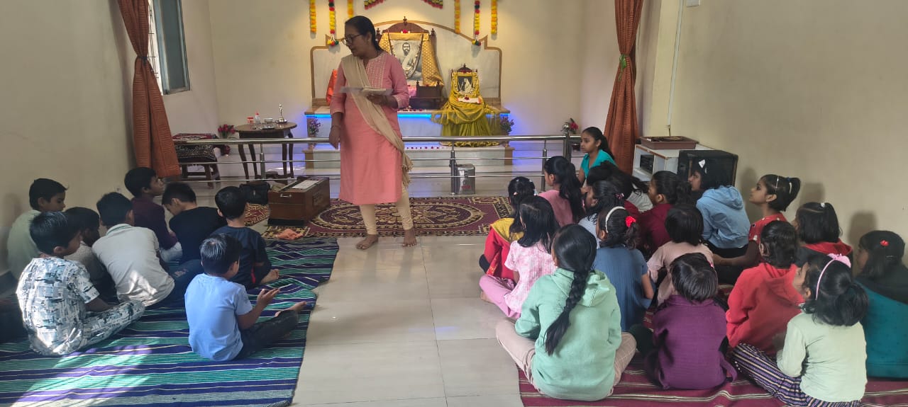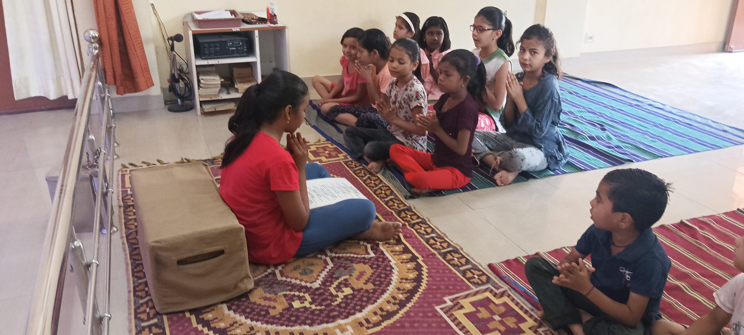 goodness of men. No nation is great or good because parliament enacts this or that, but because its men are great and good. Men are more valuable than all the wealth of the world. With these ideas and ideals of Swami Vivekananda and him as an inspiration every Sunday in campus of Ashram we hold a weekly programmes for children, girls and youths where we try to manifest latent energy of youth & put them in direction of Nation Building and Spiritual Awakening, through various different activities. In modern times, vitality of Value Education is rigorously felt; especially for children who are exposed to diverse aspects of life through different media’s and internet. To add up challenges of our times are enormous. To get our children ready for these vanities and instigate them with Values, every Sunday we conduct a programmes for children too.