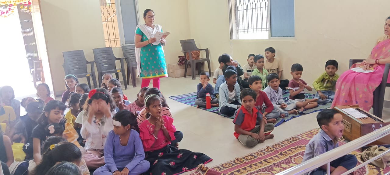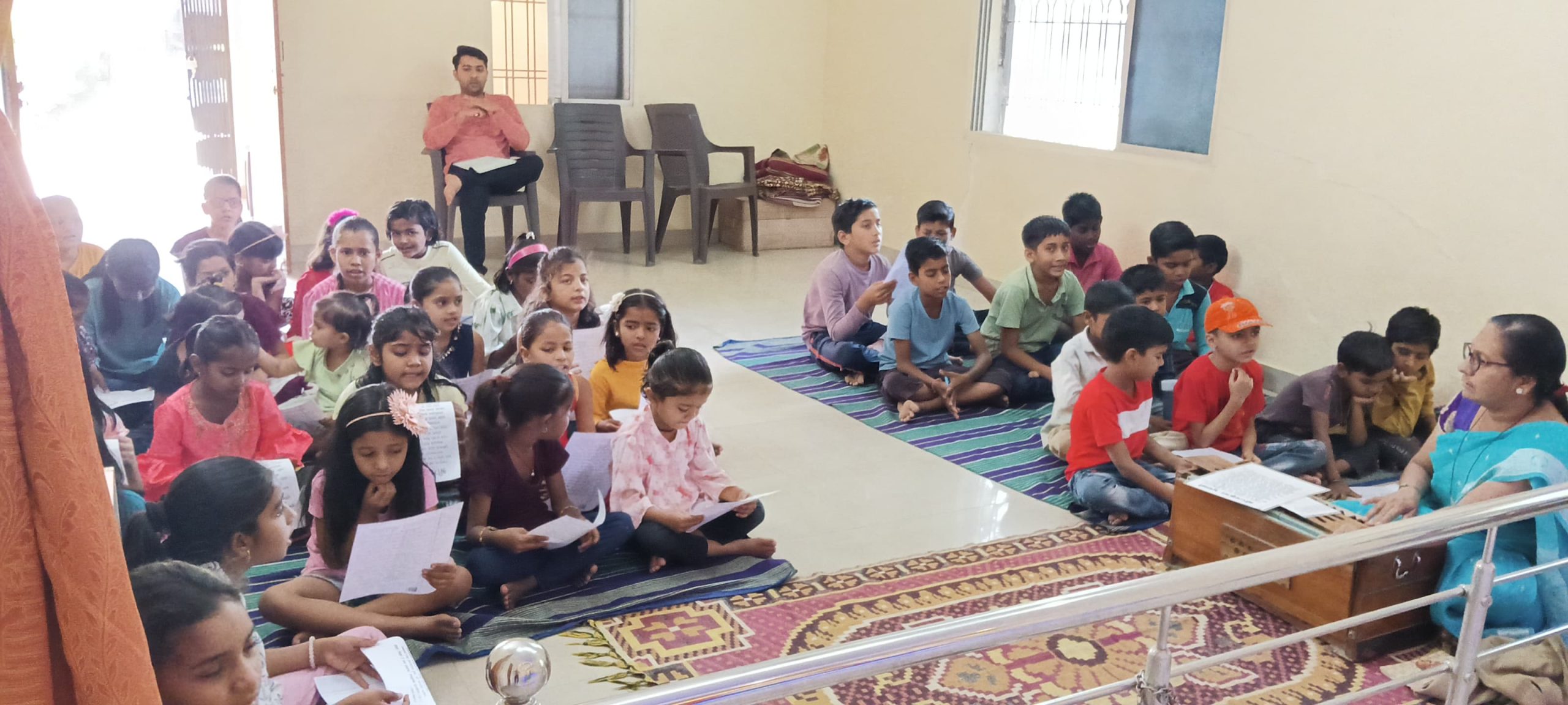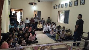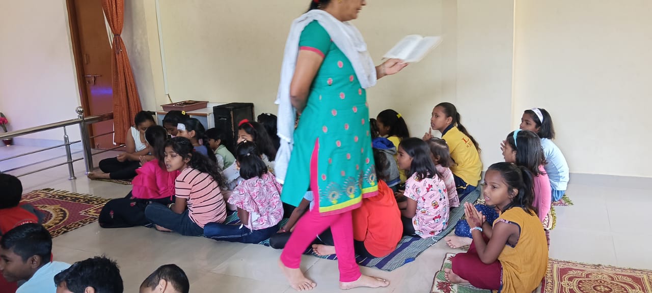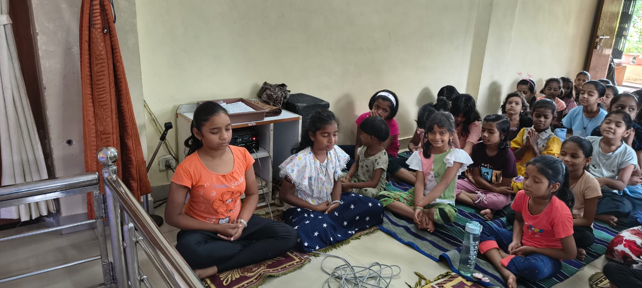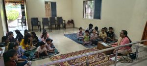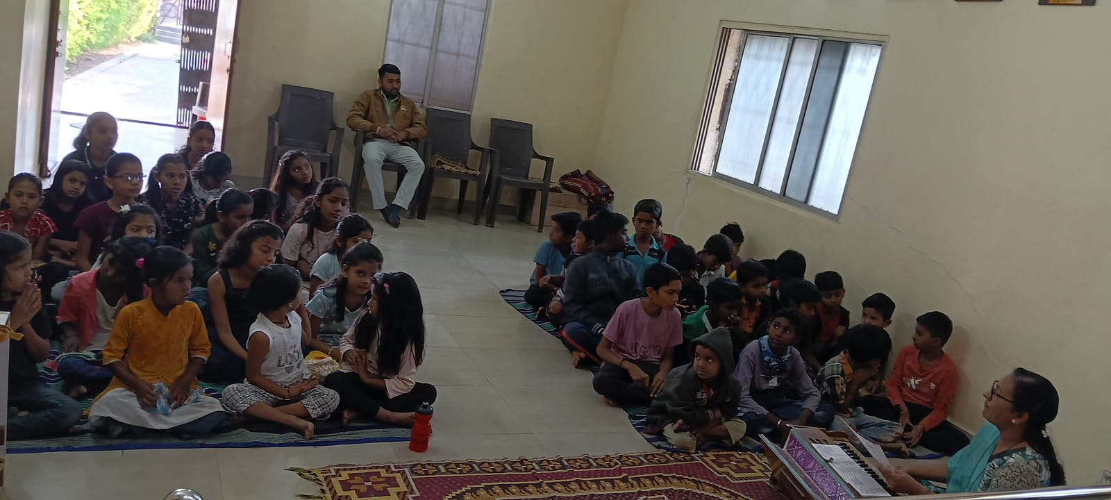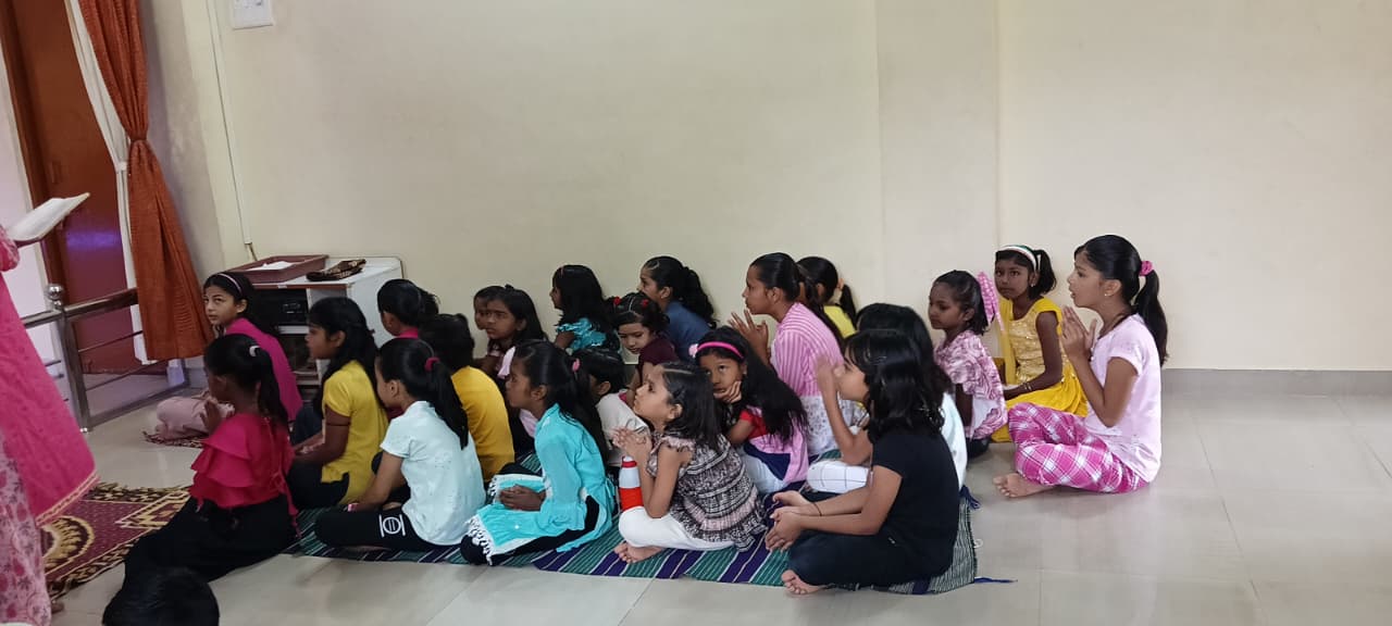 goodness of men. No nation is great or good because parliament enacts this or that, but because its men are great and good. Men are more valuable than all the wealth of the world. With these ideas and ideals of Swami Vivekananda and him as an inspiration every Sunday in campus of Ashram we hold a weekly programmes for children, girls and youths where we try to manifest latent energy of youth & put them in direction of Nation Building and Spiritual Awakening, through various different activities. In modern times, vitality of Value Education is rigorously felt; especially for children who are exposed to diverse aspects of life through different media’s and internet. To add up challenges of our times are enormous. To get our children ready for these vanities and instigate them with Values, every Sunday we conduct a programmes for children too.