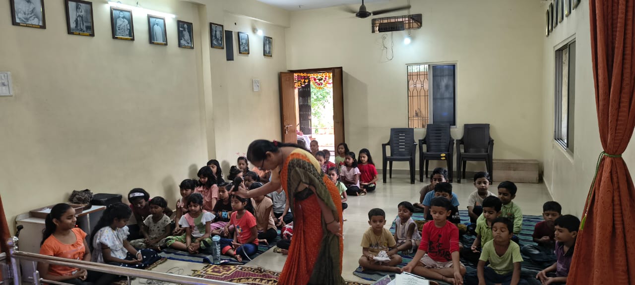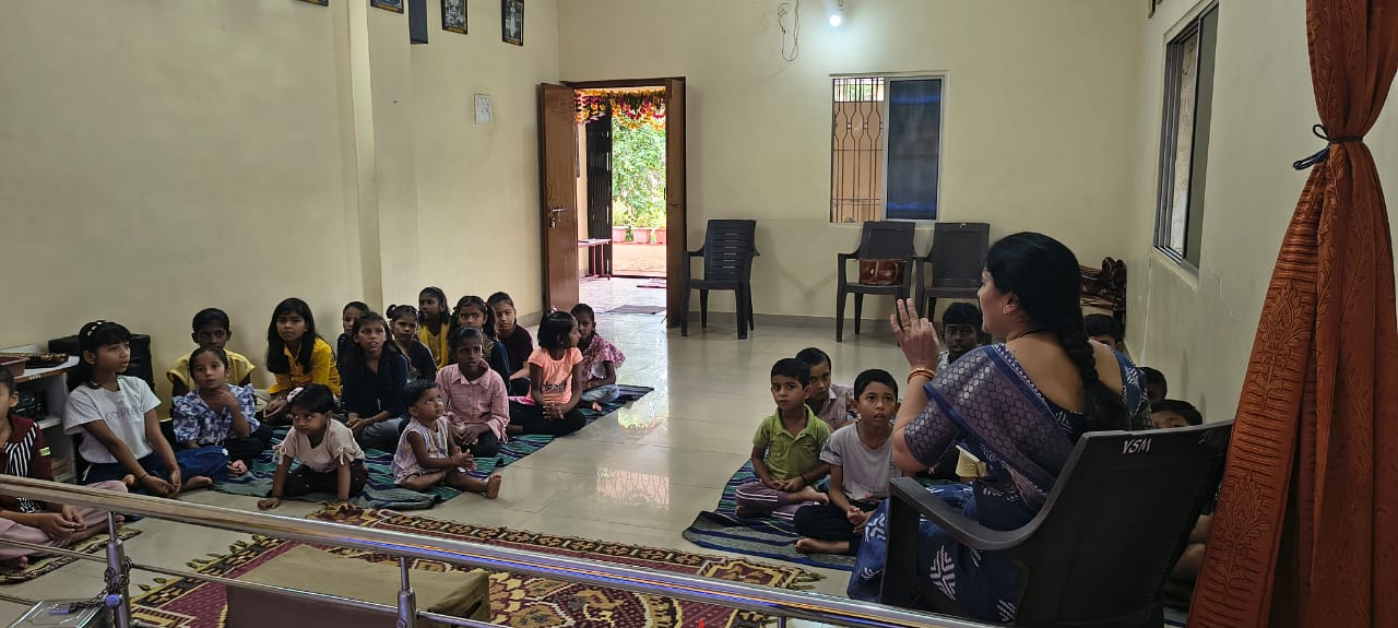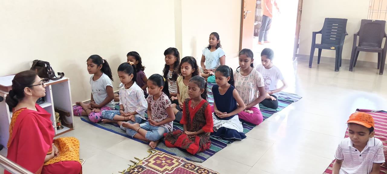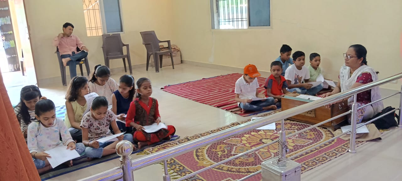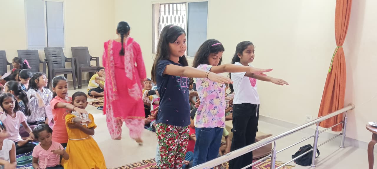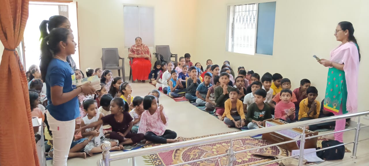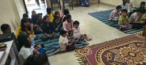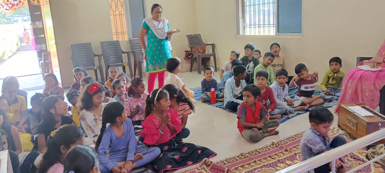goodness of men. No nation is great or good because parliament enacts this or that, but because its men are great and good. Men are more valuable than all the wealth of the world. With these ideas and ideals of Swami Vivekananda and him as an inspiration every Sunday in campus of Ashram we hold a weekly programmes for children, girls and youths where we try to manifest latent energy of youth & put them in direction of Nation Building and Spiritual Awakening, through various different activities. In modern times, vitality of Value Education is rigorously felt; especially for children who are exposed to diverse aspects of life through different media’s and internet. To add up challenges of our times are enormous. To get our children ready for these vanities and instigate them with Values, every Sunday we conduct a programmes for children too.