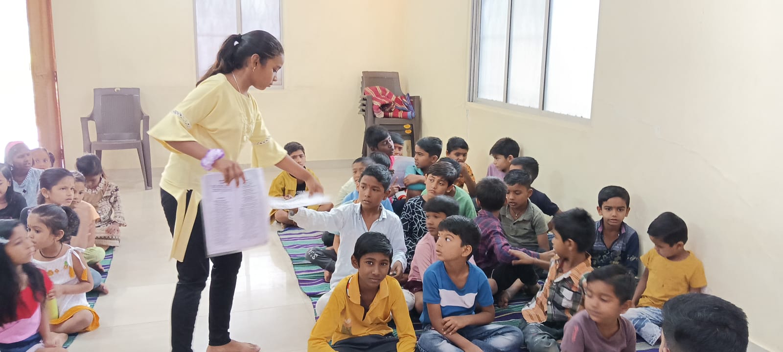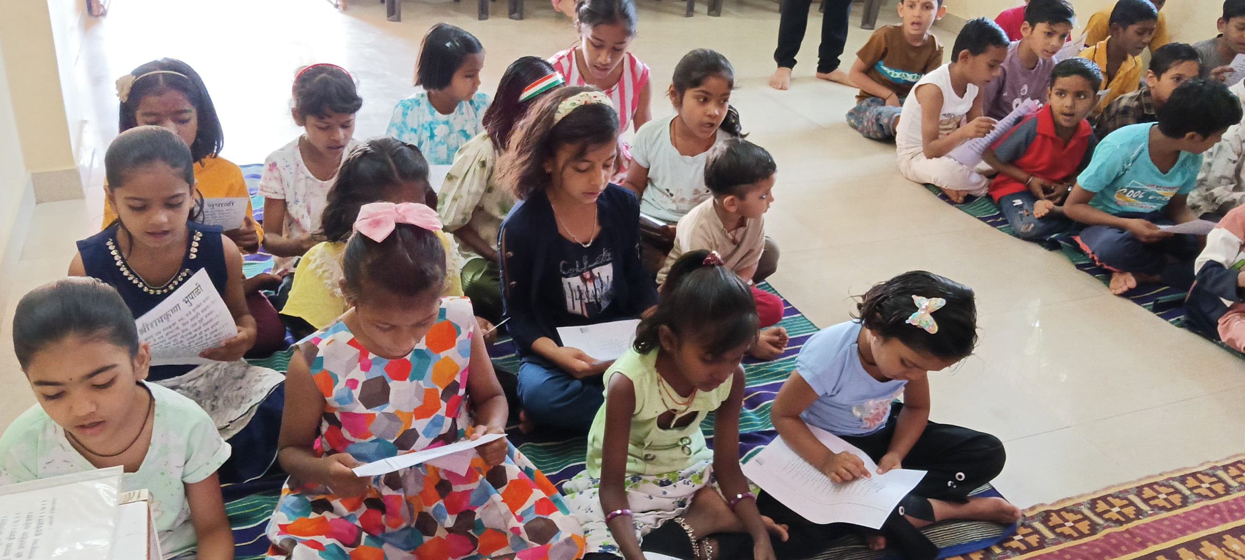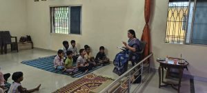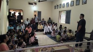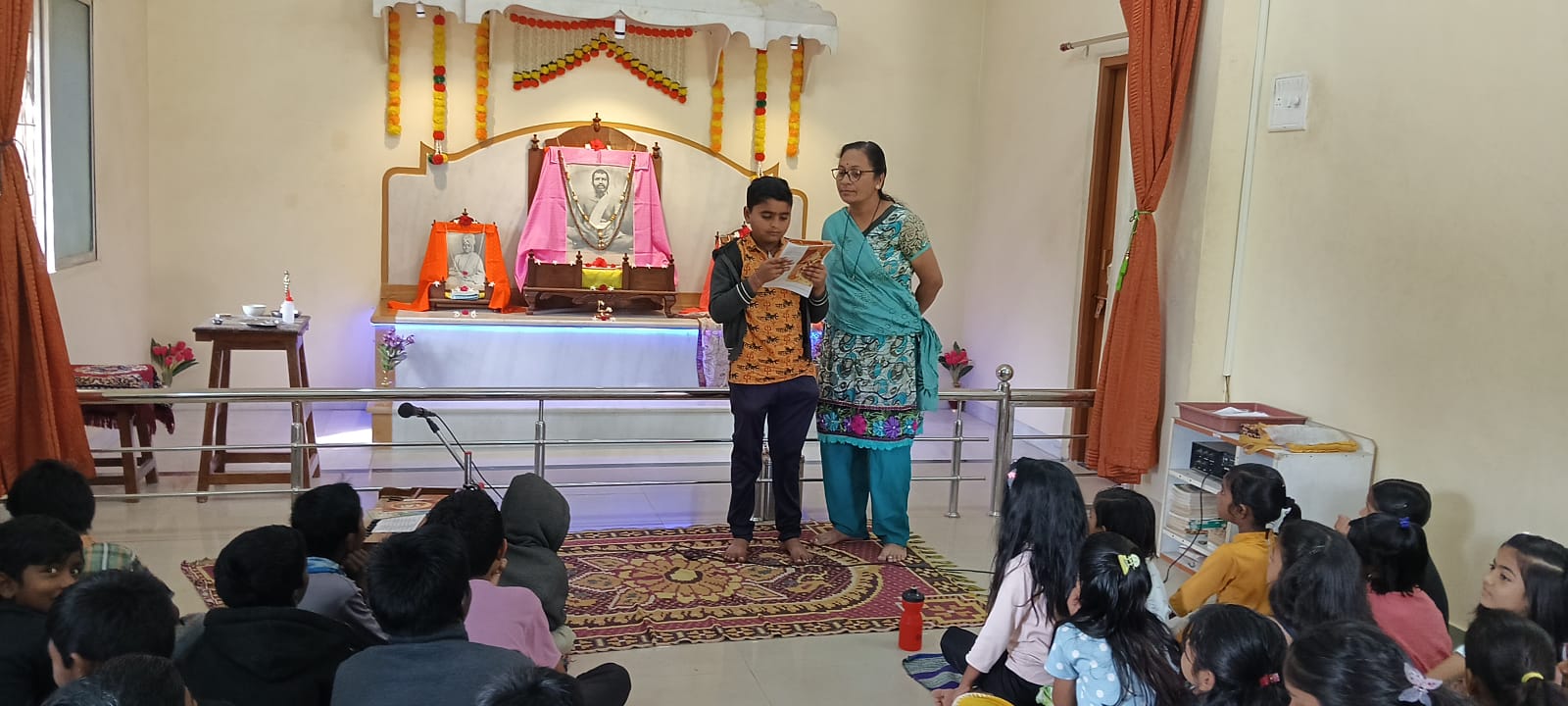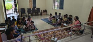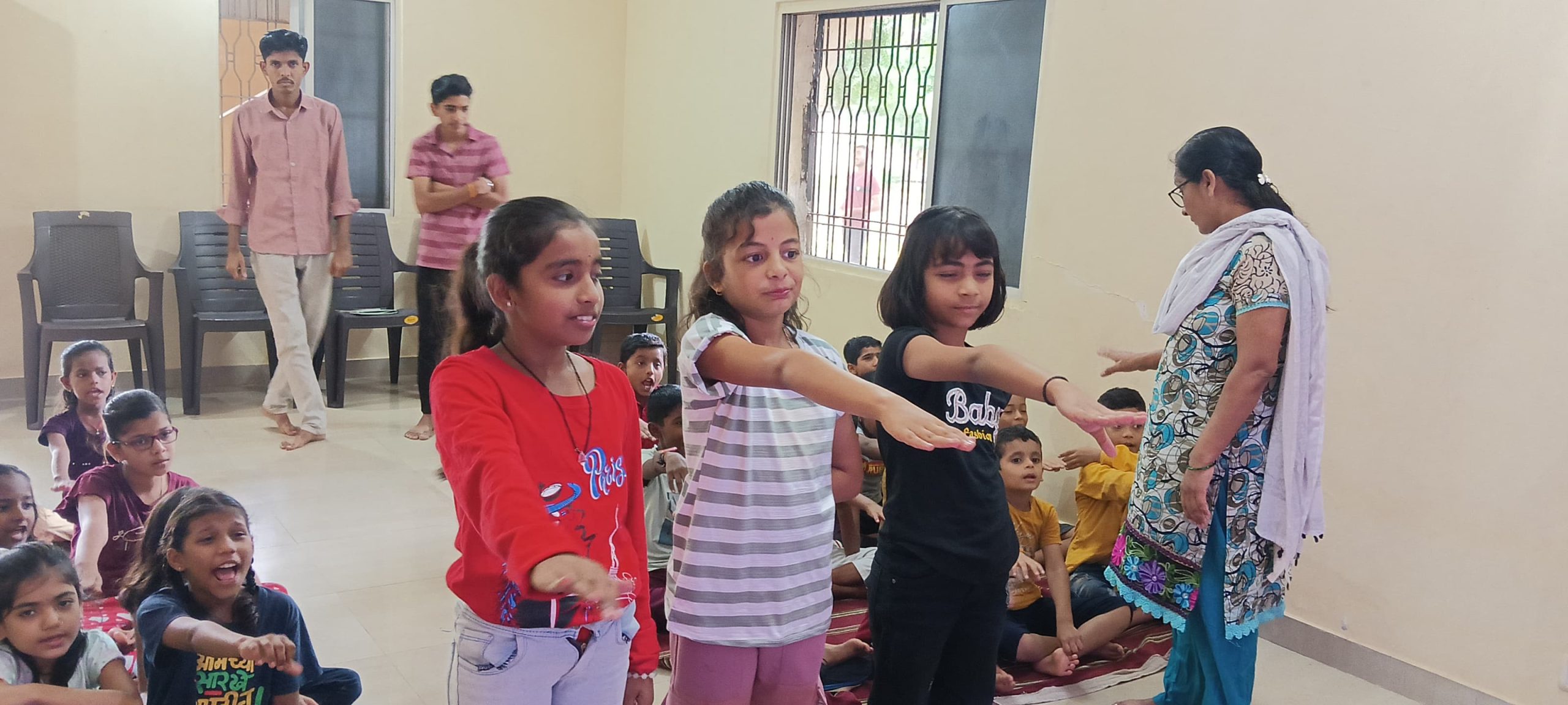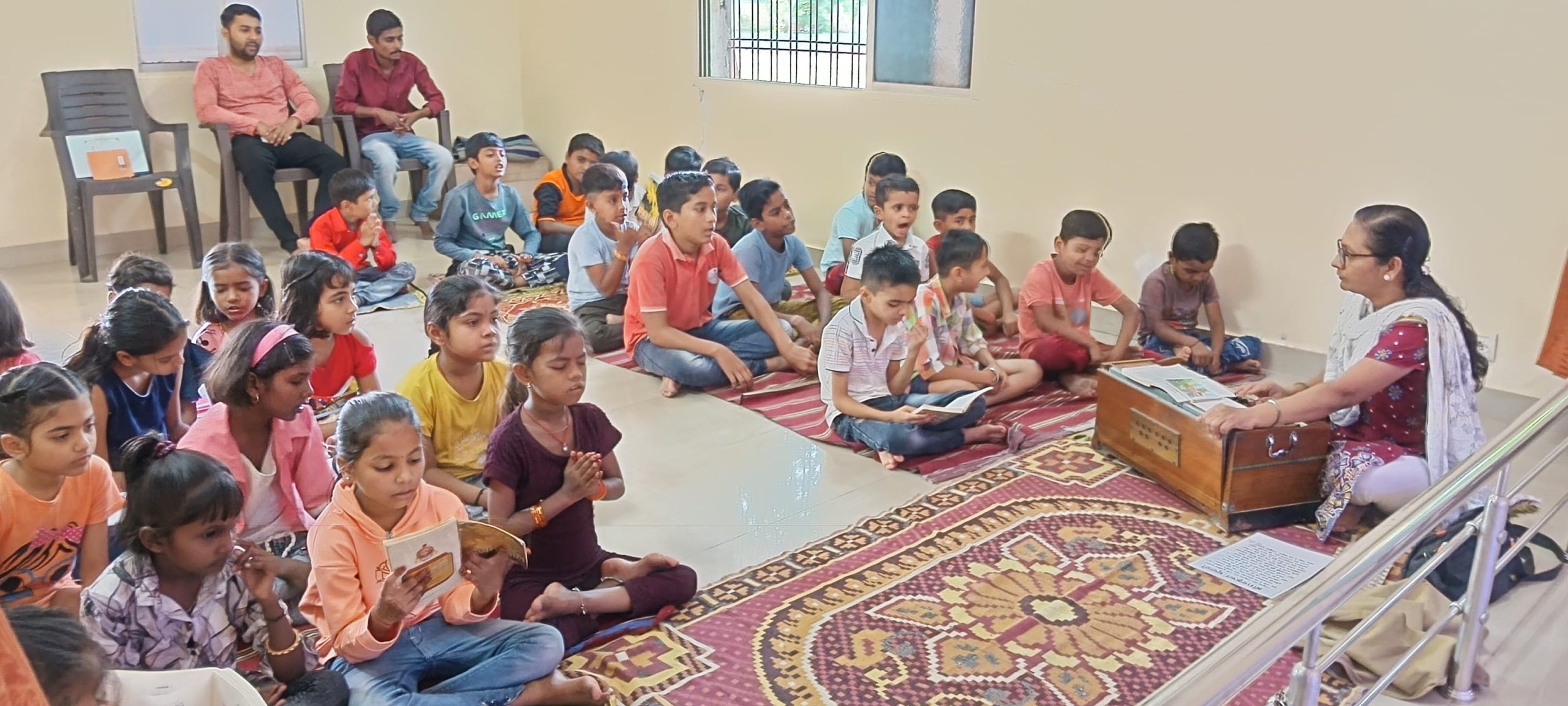 goodness of men. No nation is great or good because parliament enacts this or that, but because its men are great and good. Men are more valuable than all the wealth of the world. With these ideas and ideals of Swami Vivekananda and him as an inspiration every Sunday in campus of Ashram we hold a weekly programmes for children, girls and youths where we try to manifest latent energy of youth & put them in direction of Nation Building and Spiritual Awakening, through various different activities. In modern times, vitality of Value Education is rigorously felt; especially for children who are exposed to diverse aspects of life through different media’s and internet. To add up challenges of our times are enormous. To get our children ready for these vanities and instigate them with Values, every Sunday we conduct a programmes for children too.